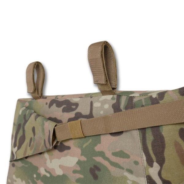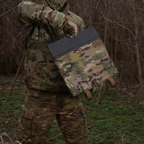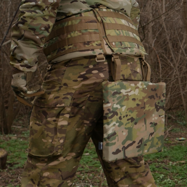 - також можна фіксувати сидушку за допомогою спеціальних строп на липучці на систему Molle на плитоноску чи пояс РПС;