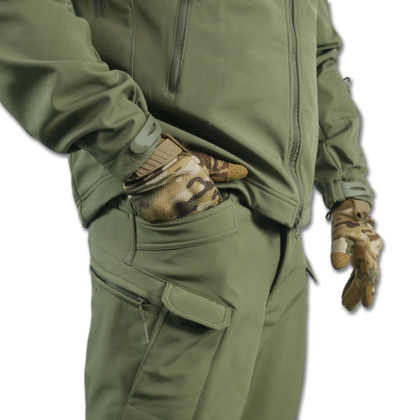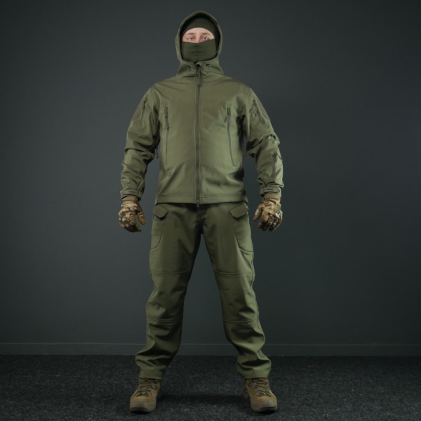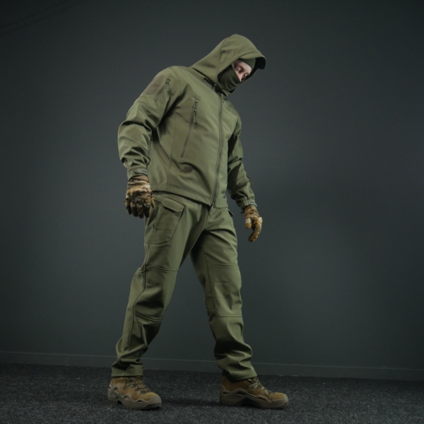 Тактичний костюм з матеріалу SoftShell поєднує комфорт, функціональність і захист у складних погодних умовах. Тришарова структура забезпечує теплоізоляцію, вітрозахист і водовідштовхувальний ефект, зберігаючи зручність під час активного використання.