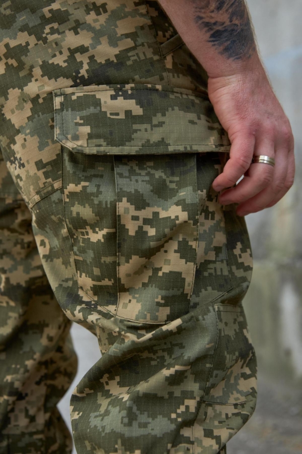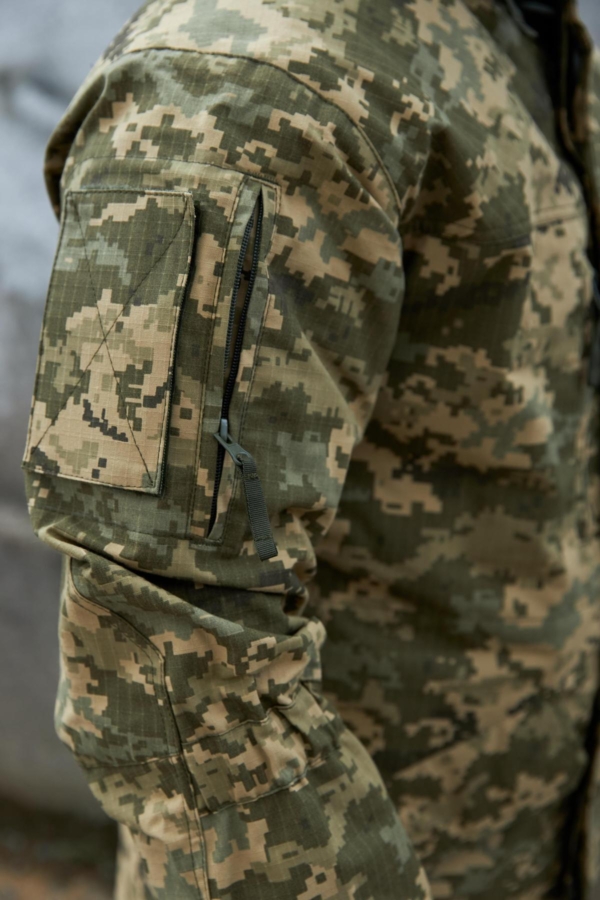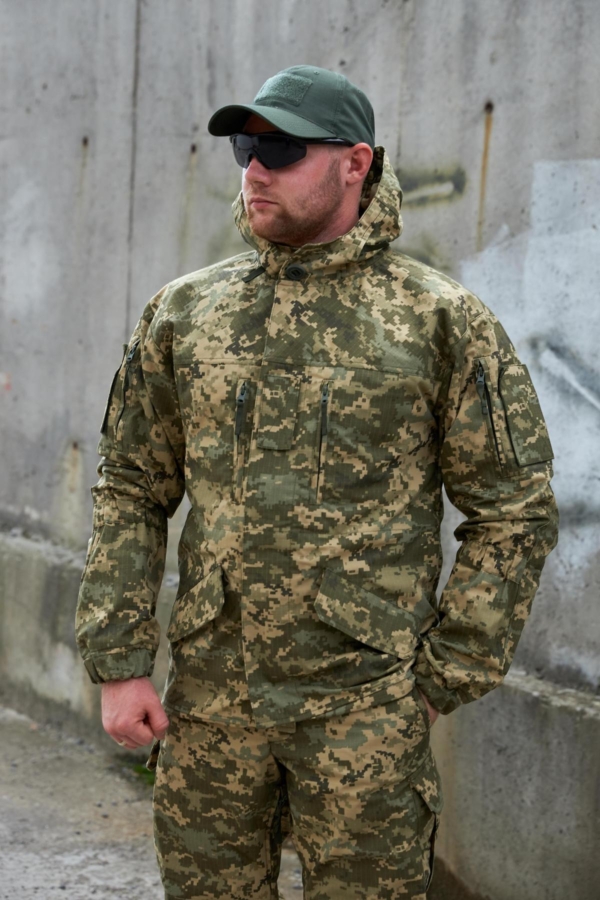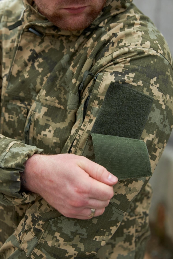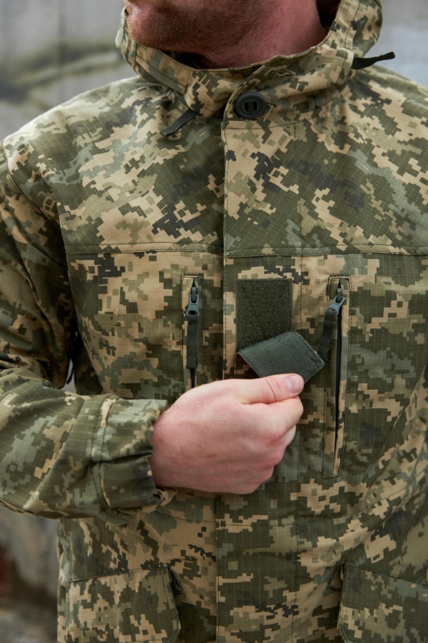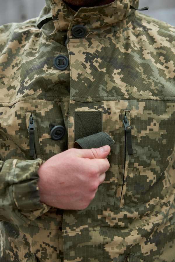- Багато кишень на змійках, липучках та ґудзиках для зручного зберігання спорядження.