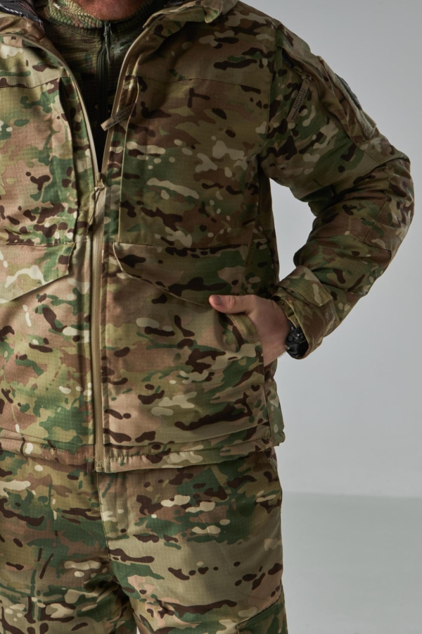 Куртка включає в себе безліч кишень (10 шт) комфортна та легка, виконана з міцного, зносостійкого матеріалу ріп-стоп з просякненням для вологостійкості.