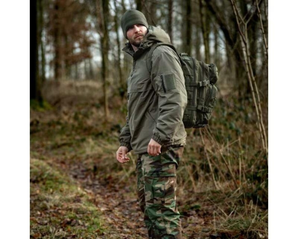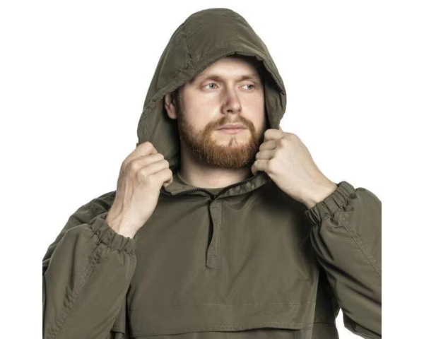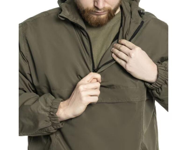 Куртка-анорак вільного крою з міцного поліестеру з вітрозахисною зовнішньою тканиною, м'якою флісовою підкладкою та наповнювачем з синтетичного поліестеру щільністю 80 г/м2 для захисту від холоду. Рукава підкладені гладким шаром поліестеру.