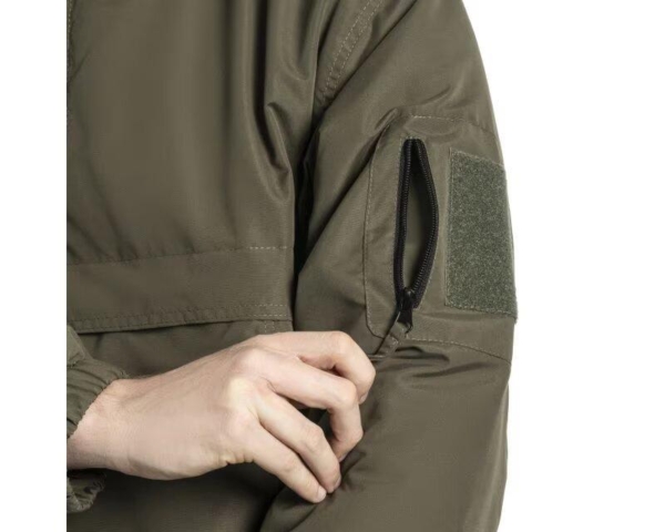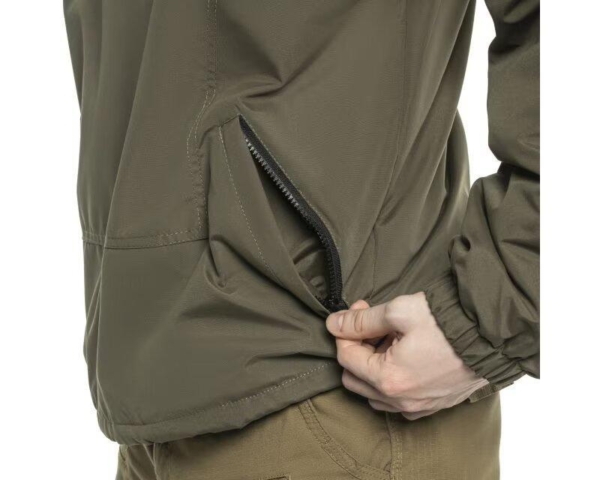 Куртка має високий комір з підборідником та інтегрований капюшон з можливістю регулювання. Часткова застібка на блискавку під горловиною полегшує одягання куртки та дозволяє регулювати потік повітря під одягом. Ребристі манжети та пояс захищають від втрати тепла.