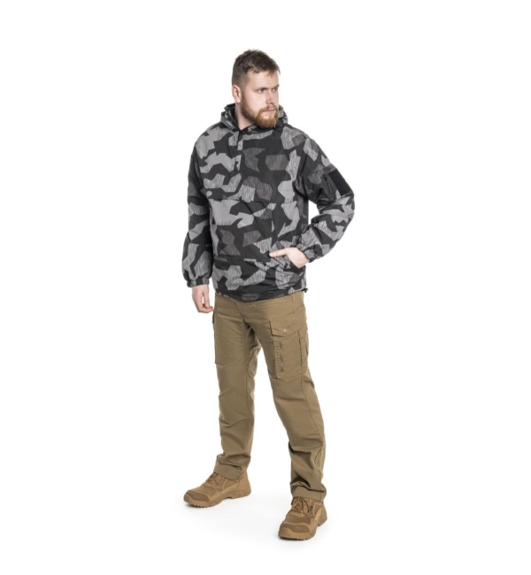 Куртка-анорак вільного крою з міцного поліестеру з вітрозахисною зовнішньою тканиною, м'якою флісовою підкладкою та наповнювачем з синтетичного поліестеру щільністю 80 г/м2 для захисту від холоду. Рукава підкладені гладким шаром поліестеру.
