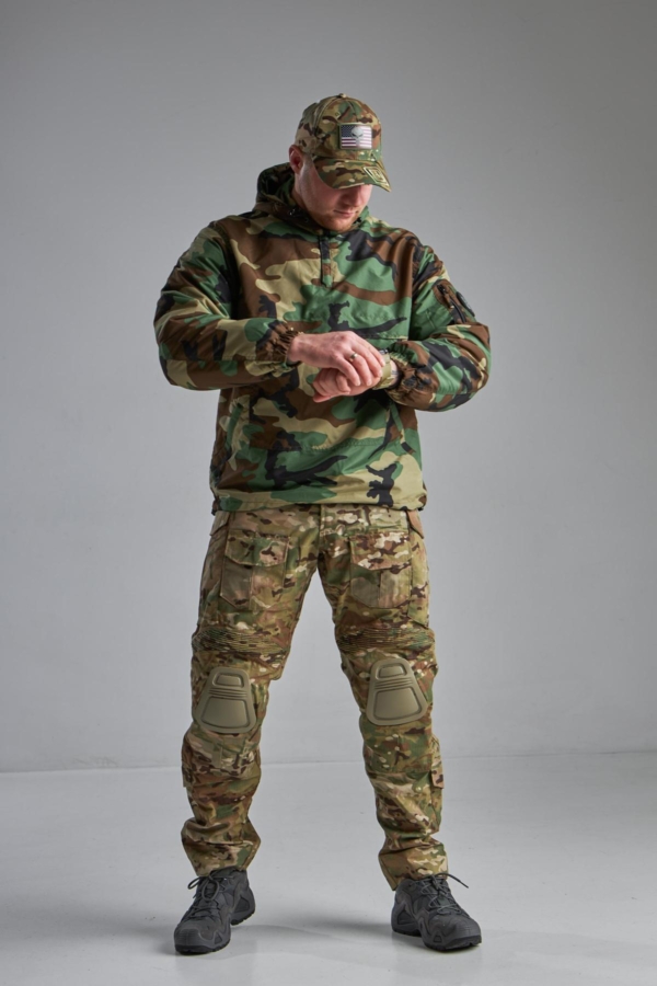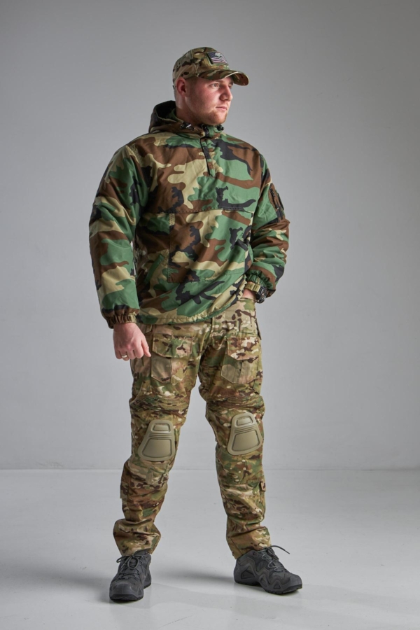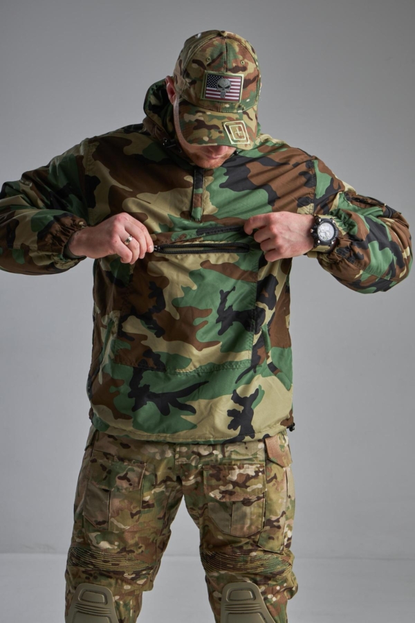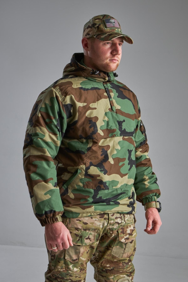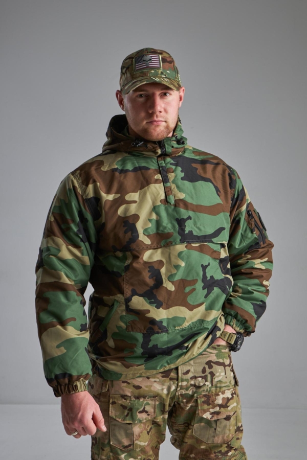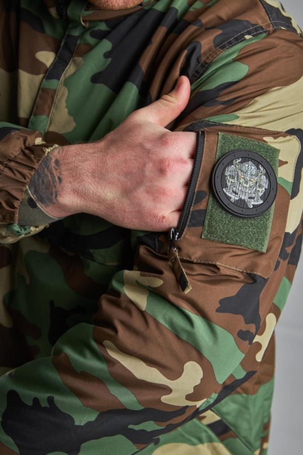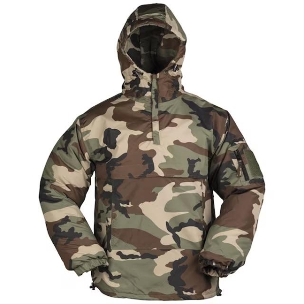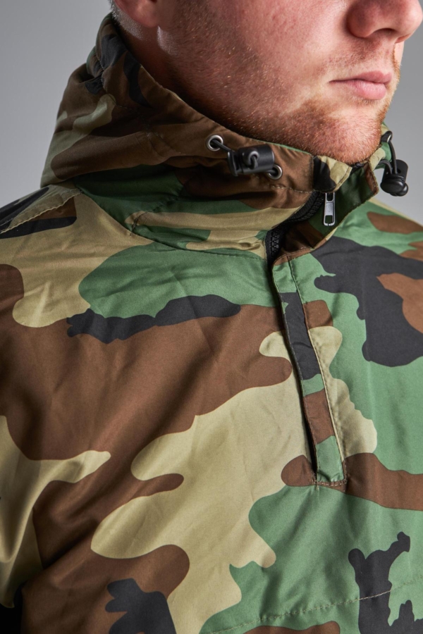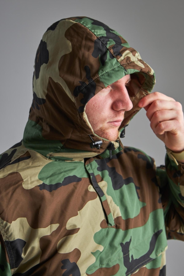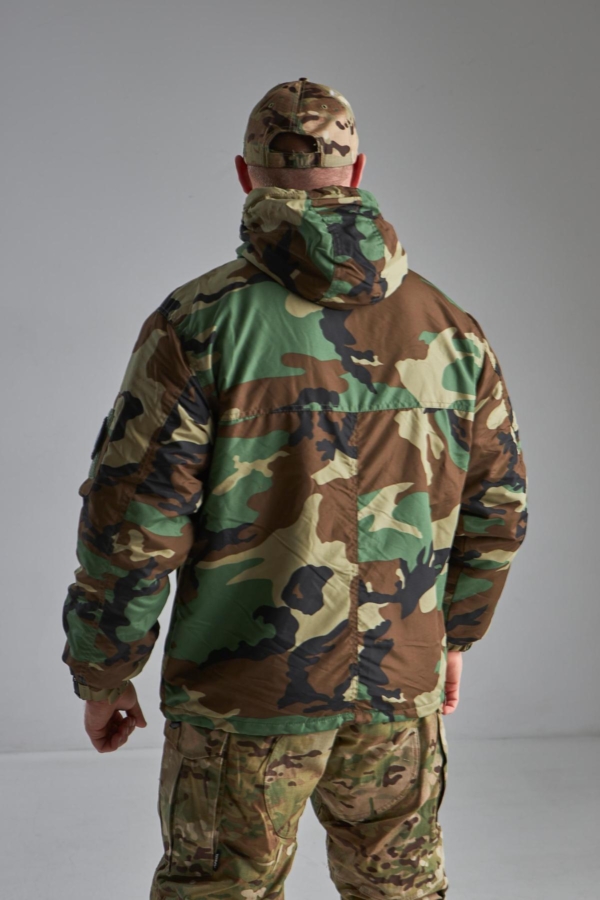 Куртка має високий комір із захистом під боріддя та інтегрований регульований капюшон . Часткова застібка-блискавка під горловиною полегшує одягання куртки та регулює потік повітря під одягом. Шнурки на манжетах та поясі захищають від втрати тепла.