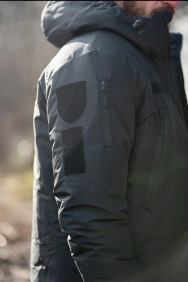 •Кишені: присутні дві нагрудні кишені на блискавках, на рукавах з обох сторін та на передпліччі.