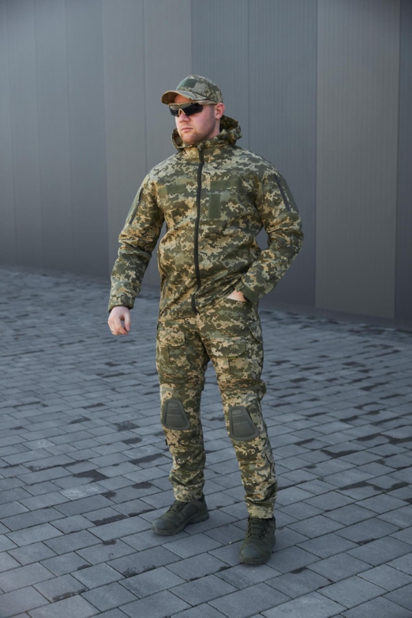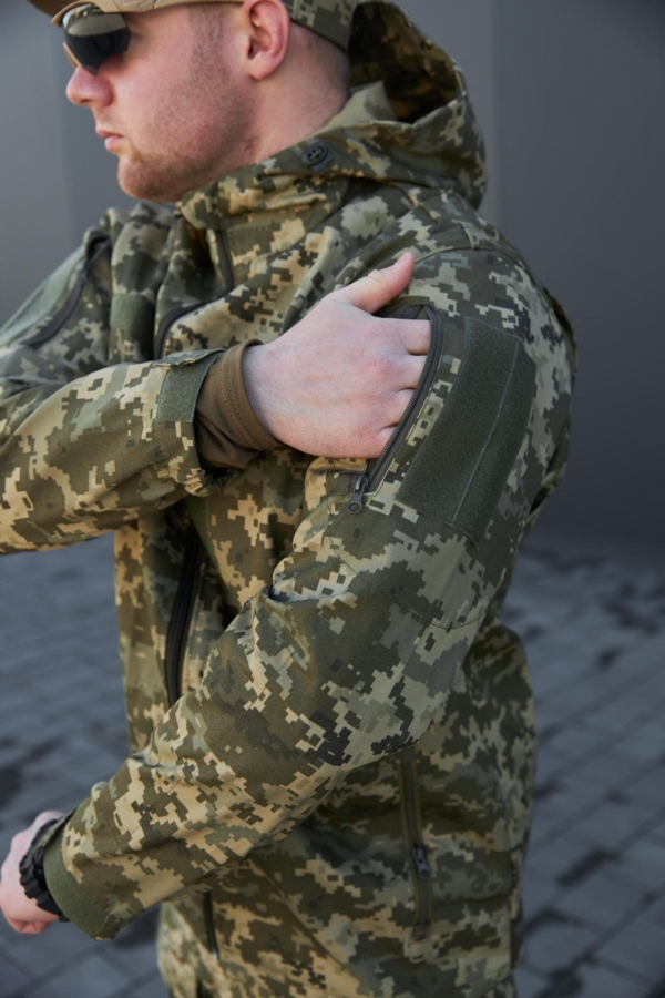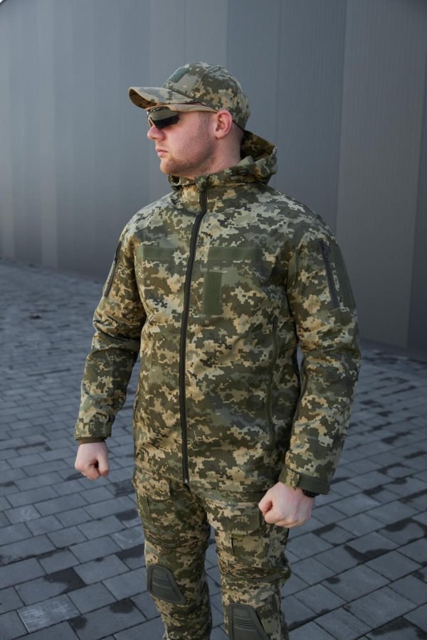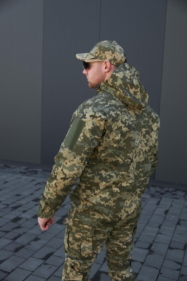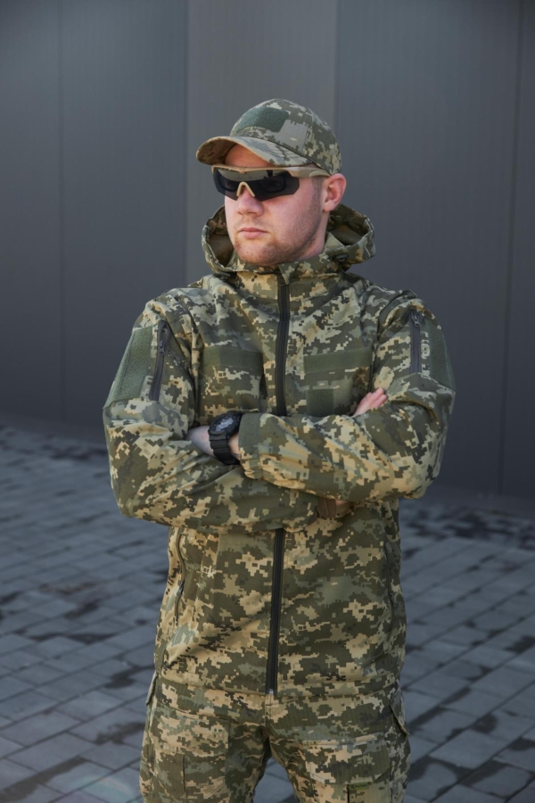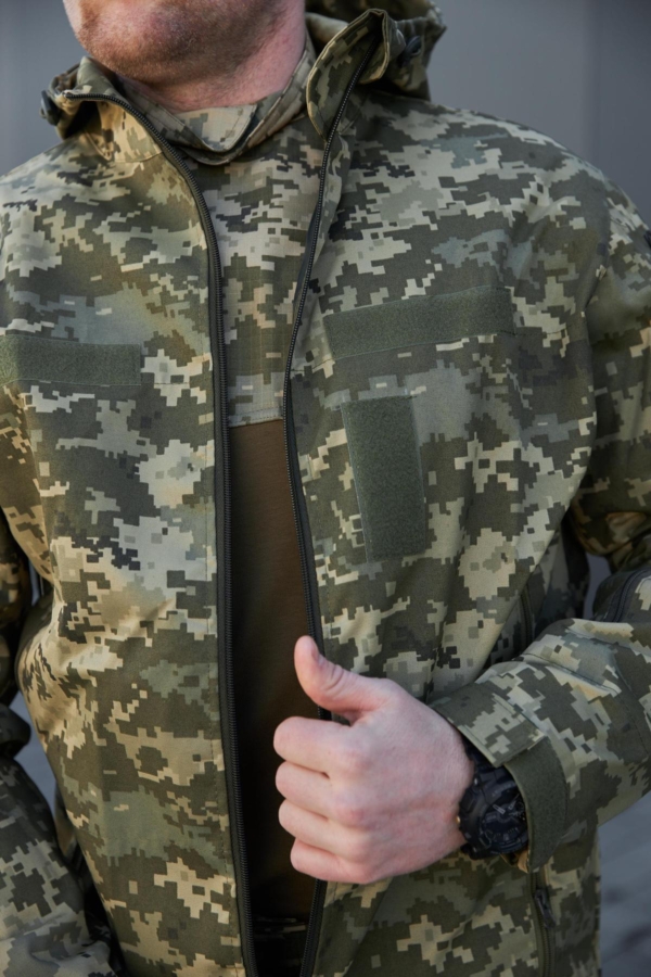 Ця легка літня куртка в забарвленні "Піксель" – відмінний вибір для теплої пори року, поєднуючи функціональність та комфорт.