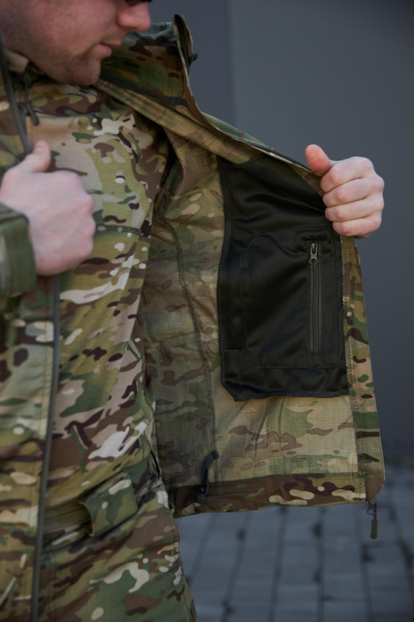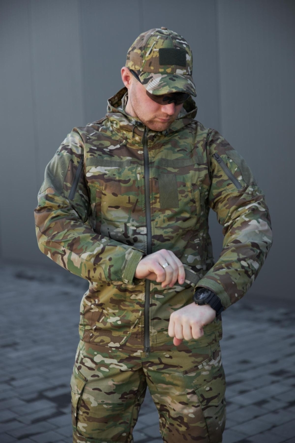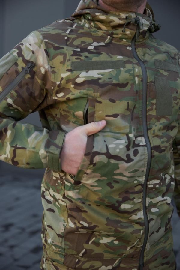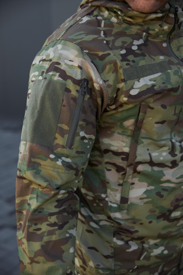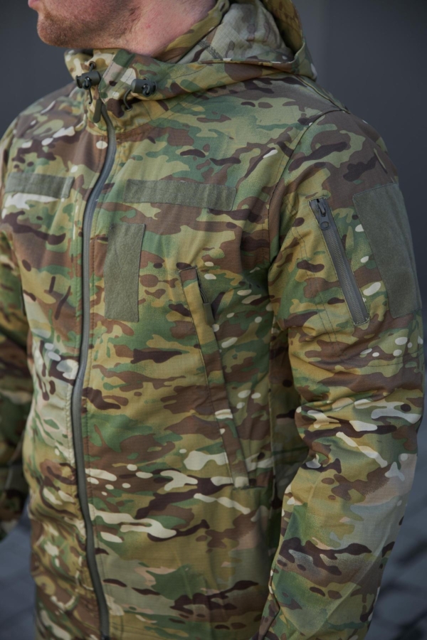 У куртці присутні мʼякі Велкро панелі під шеврони, глибокі кишені на блискавках та кишені з обох сторін на рукавах.