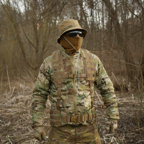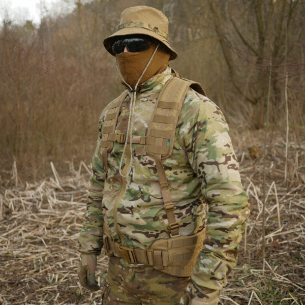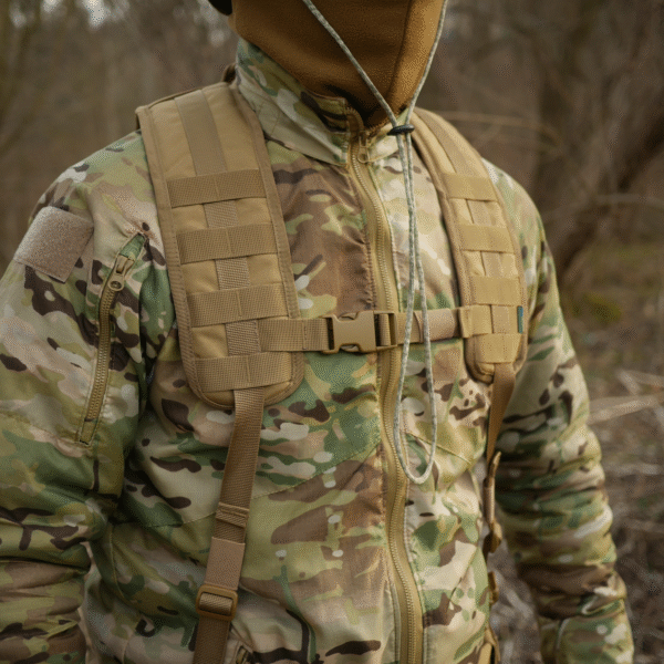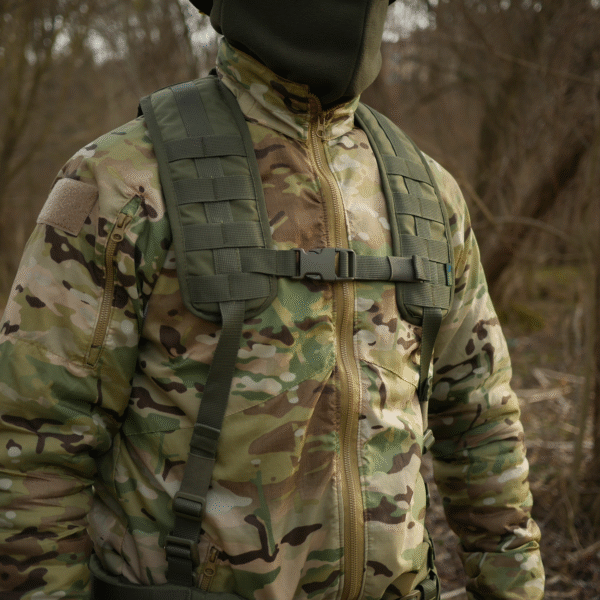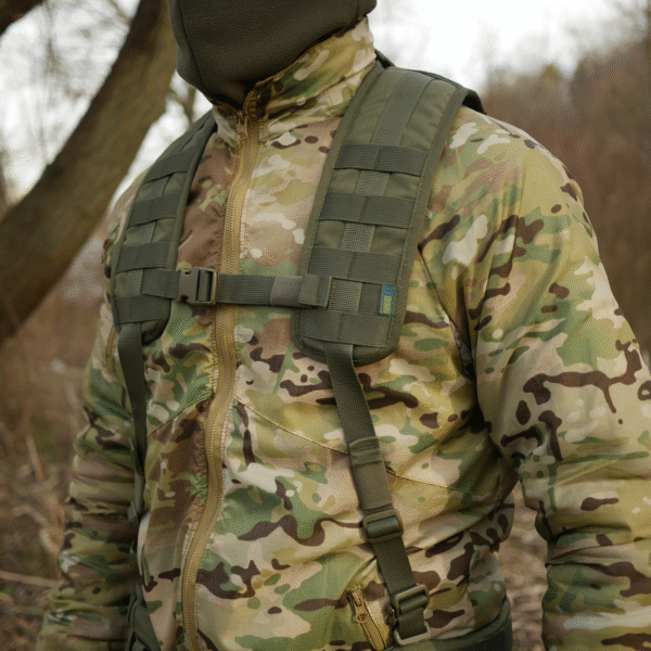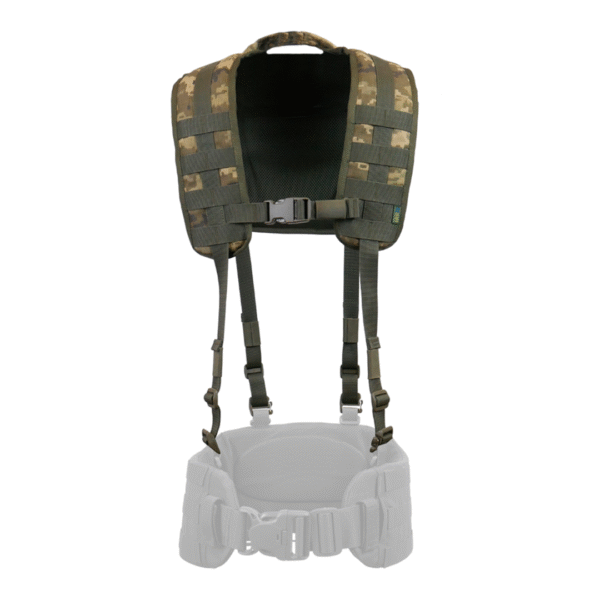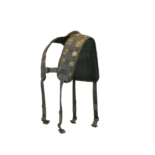 Конструкція. Плечові лямки мають рюкзачну конструкцію з системою MOLLE на спині для закріплення додаткового спорядження. Мають внутрішній демпферний шар піни товщиною 5 мм та м'яку 3D сітку для вентиляції. На лямках передбачено 5 рядів MOLLE по спині і по 4 спереду. Нагрудний з’єднувальний ремінь дає змогу регулювати ширину лямок.