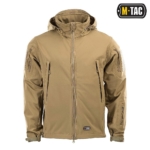 M-TAC куртка Soft Shell виготовлена з поміжслойної поліуретанової мембрани, яка захищає від негоди. Усередині тонкий фліс. Важливими властивостями виробів з софтшелла є їх невелика вага і комбінація двох шарів одягу в одному. Софтшелл об'єднує в собі зовнішній шар (для захисту від вітру і негоди) і ізолюючий внутрішній шар. Поверхня не тільки захищає від вологи, але так само і відхиляє бруд. Крім того, м'який і обтічний матеріал надає більше комфорту при носінні. Передня блискавка виготовлена компанією YKK, вона якісна і виконує свою функцію без будь-яких видимих проблем.