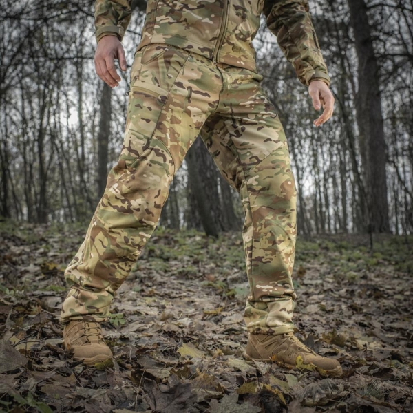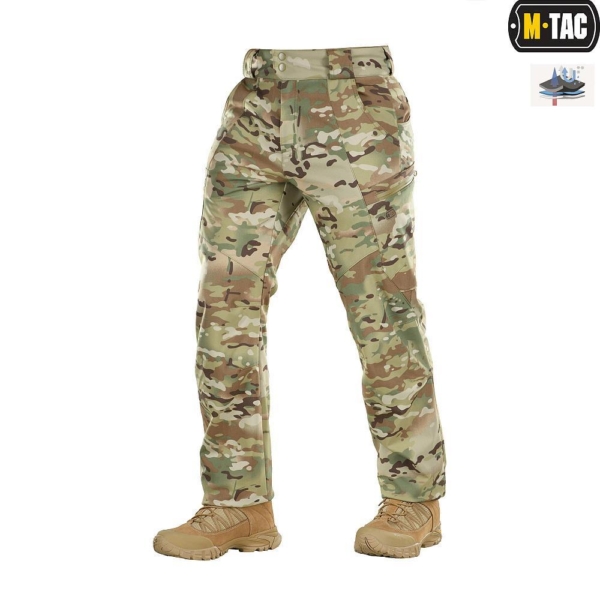 M-Tac брюки Soft Shell Winter. Тканина softshell поєднує в собі теплоізолюючі та "дихаючі" властивості флісу і вітро- вологостійкість, міцність зовнішнього шару. Зовнішня поверхня блокує вітер, а внутрішній шар тканини відводить надлишкову вологу. Використовується в якості верхнього шару в умовах міжсезоння і взимку. Для додаткового комфорту в холодні періоди року, виробник додав флісову підкладку.