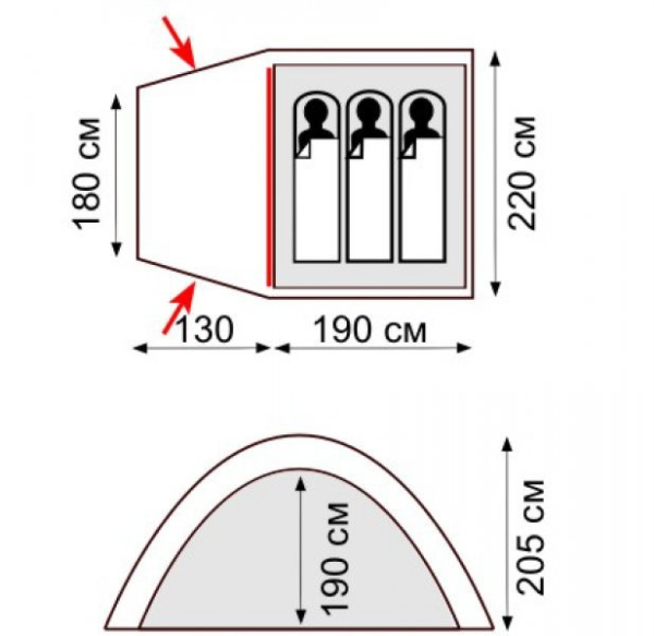 - Двухслойная кемпинговая палатка с одним входом и большим тамбуром