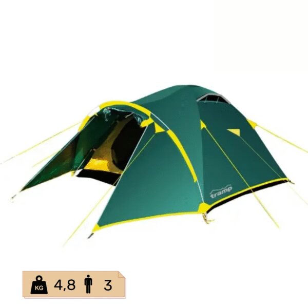 Палатка Lair 3 Tramp TRT-039 порадует своей простотой в установке и продуманностью. Q-образные двери облегчают вход и выход. А качественные молнии позволят открыть дверь или сетку одним движением руки. Большие вентиляционные окна способствуют поддержанию правильного микроклимата внутри, где можно найти удобные карманы и полочки для фонаря и других мелких предметов. Стоит отметить и то, что окна снабжены прочной опорой и липучкой с водозащитным клапаном. Внешний тент палатки устойчив к ультрафиолету и обработан пропиткой против распространения огня. Все швы хорошо проклеены, а на оттяжках есть светоотражатели.