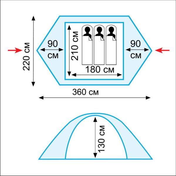 - Внешний тент палатки устойчив к ультрафиолетовому излучению