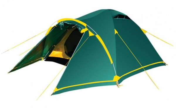 Универсальная палатка Stalker 3 V2 Tramp. Трех дуговая модель конструкции "полусфера" с просторным тамбуром, двумя входами и снежной юбкой по периметру внешнего тента. Дуги из алюминия. Время использования: 3 сезона +: весна, лето, осень и ранняя зима. Назначение: пеший и горный туризм.