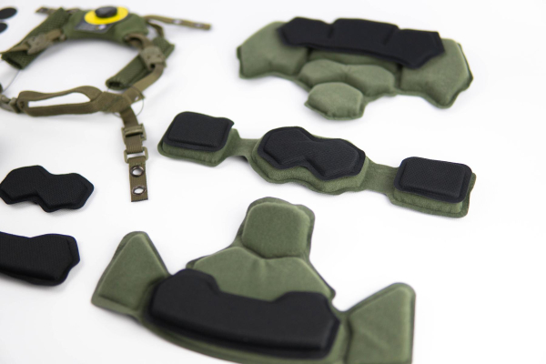 Подушки з ефектом пам'яті перший рівень кріпиться до каски, а другий рівень може бути використаний для корекції розміру, що дозволяє легко адаптувати підшоломник до різного обладнання на шоломі.