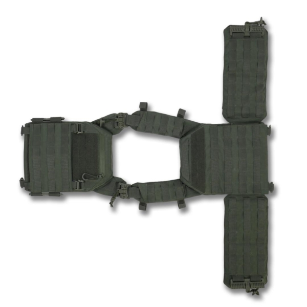 Передня частина обладнана знімною Molle-панеллю, яка кріпиться на Velcro та карабіни Woojin. Вона дозволяє розміщувати підсумки або інше Molle-сумісне спорядження, а при потребі швидко замінюється на іншу з уже підготовленим комплектом оснащення.