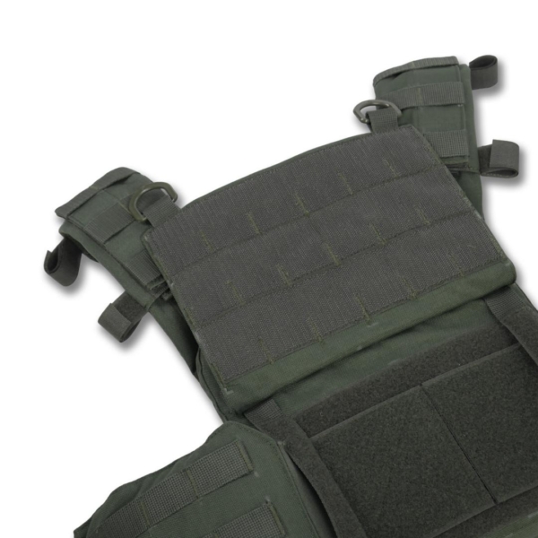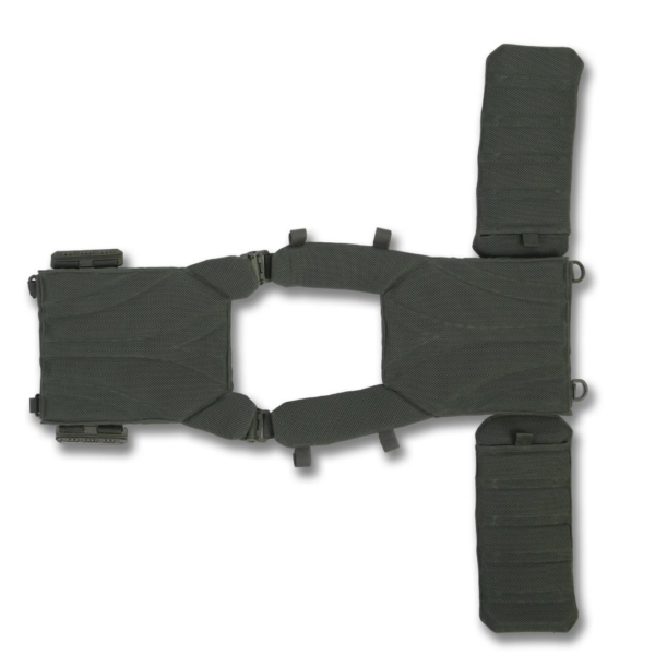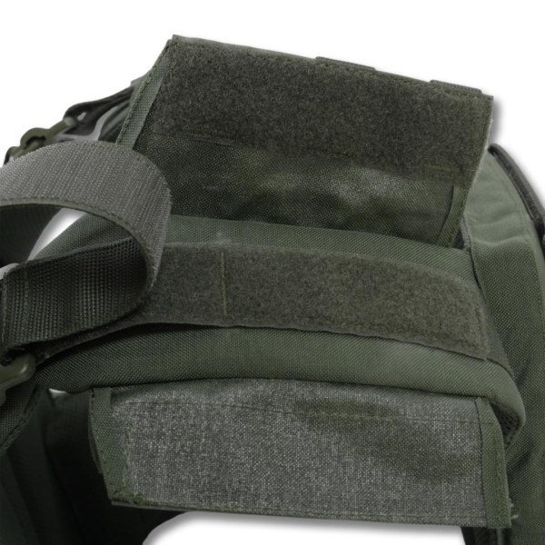 Камербанди знімні, з м’якими демпферами, розділеними на секції для більшої гнучкості. Вони фіксуються на великі Velcro-панелі та мають еластичні вставки. По периметру розташовані три ряди строп Molle, а також кишені для додаткових вставок.