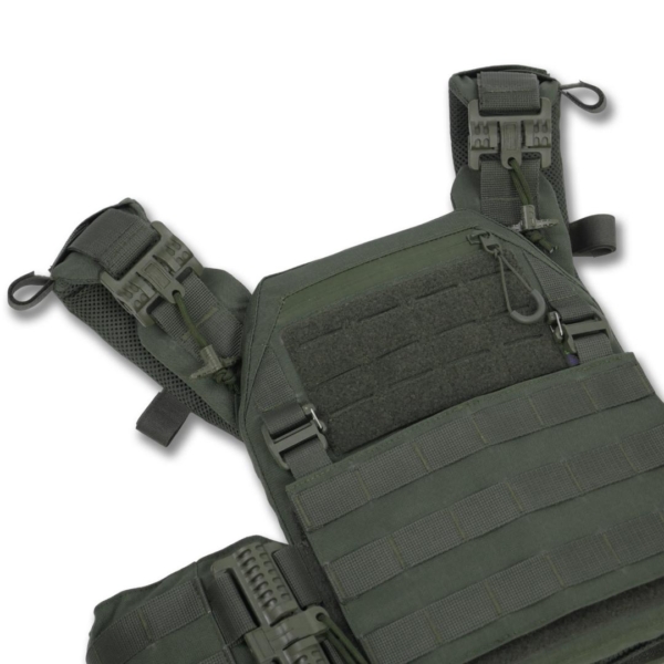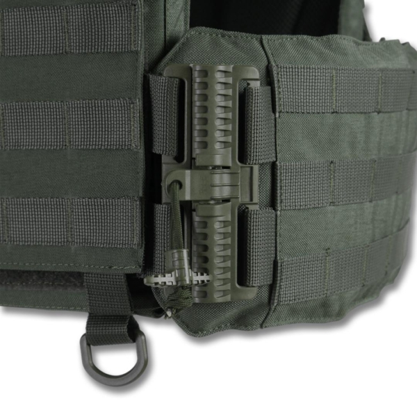 Подвійна система швидкого скидання на плечах і камербанді дозволяє зняти плитоноску за кілька секунд.