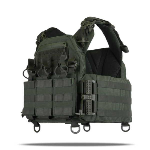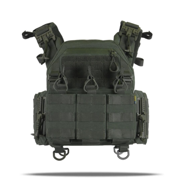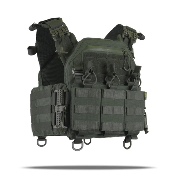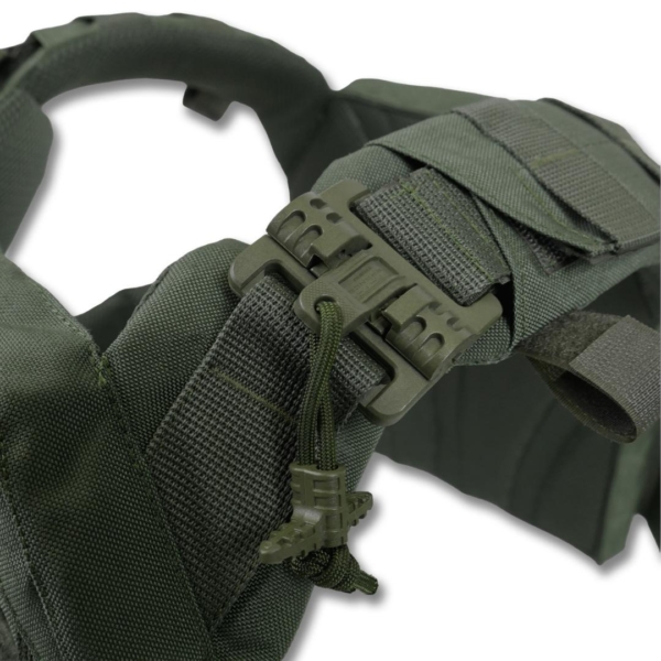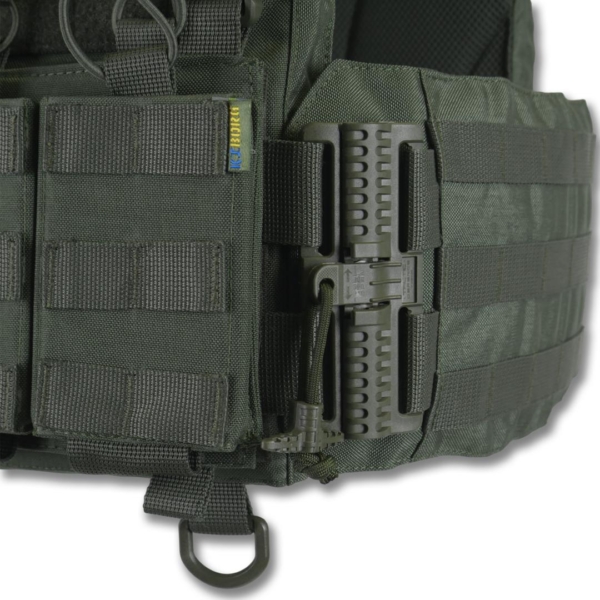 Система швидкого скидання на плечах і камербандах дозволяє за кілька секунд зняти плитоноску, а також робить процес одягання простим і зручним.