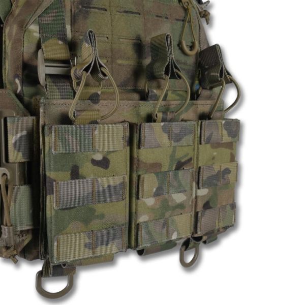Модель оснащена зʼємною передньою Molle-панеллю, яка кріпиться на Velcro та карабіни Woojin. На ній можна розміщувати підсумки чи інше Molle-сумісне спорядження. Панель легко замінюється на іншу з готовим набором оснащення.