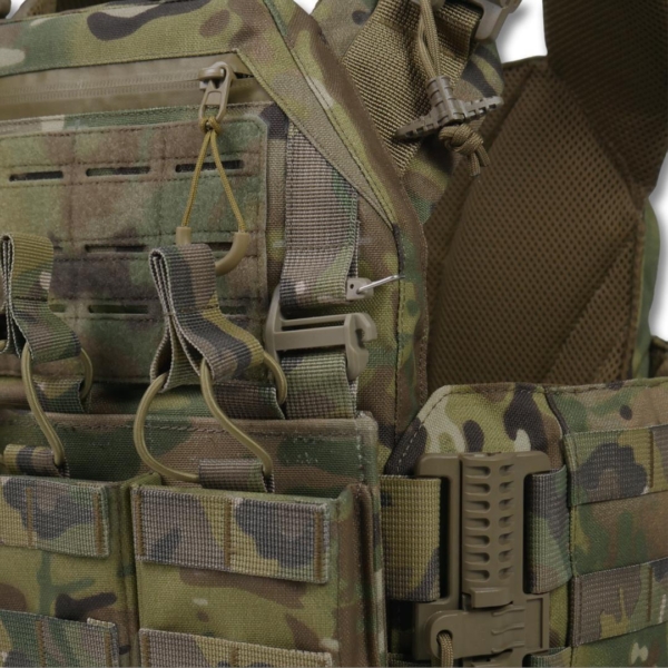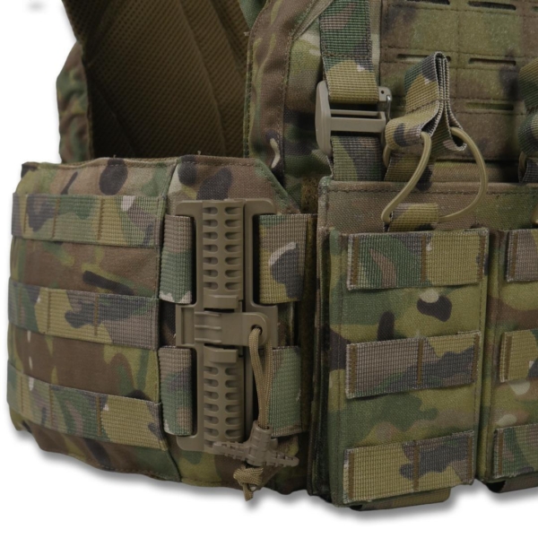 Система швидкого скидання на плечах і камербандах дозволяє за секунди зняти спорядження, а також робить його швидким і зручним у використанні.