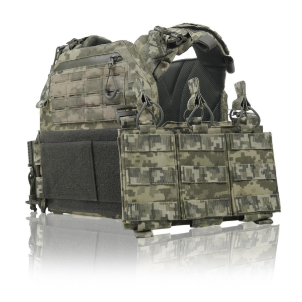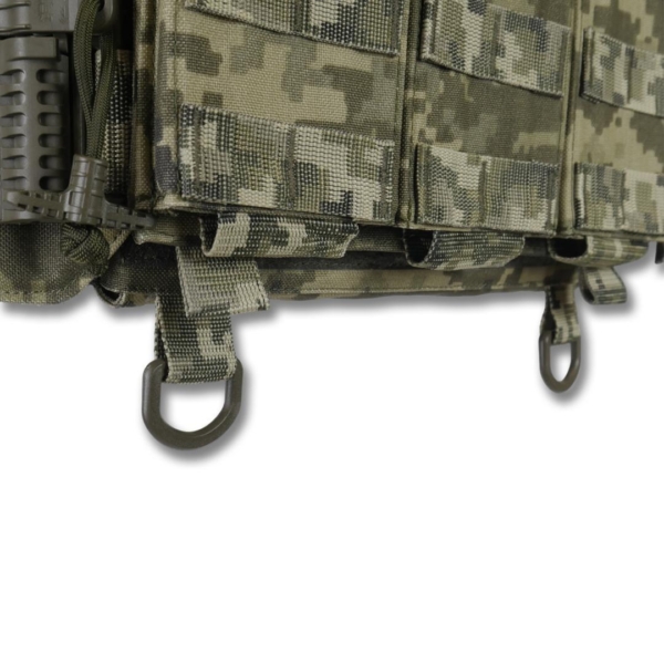 Оснащена знімною передньою панеллю з кріпленням на Velcro та двома карабінами Woojin. На панелі розміщено 3 підсумки під 1 або 2 магазини чи інше сумісне спорядження. Панель легко замінюється на попередньо зібраний варіант із потрібними елементами.