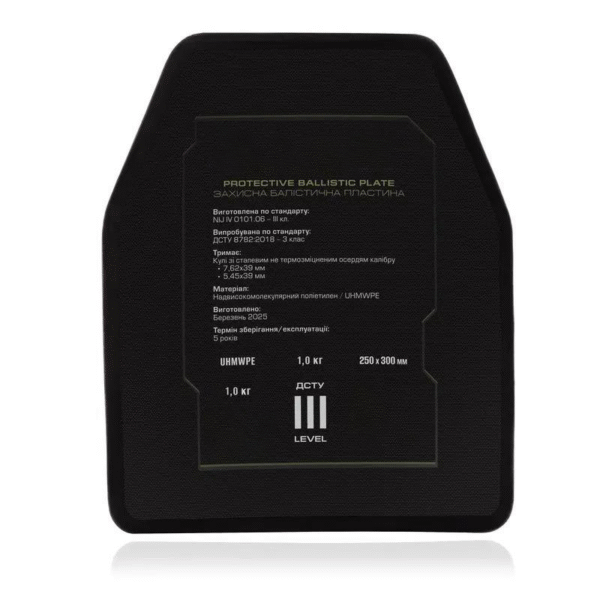 Поліетиленові бронеплити Combatant (комплект 2 шт.) 3 класу (НВМПЕ) вага однієї шт. 1,05 кг 25х30