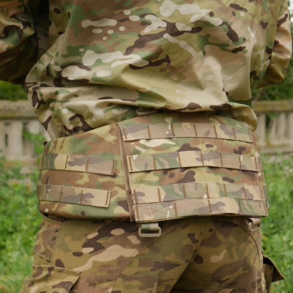 - MOLLE: по два ряди збоку та чотири ряди ззаду.