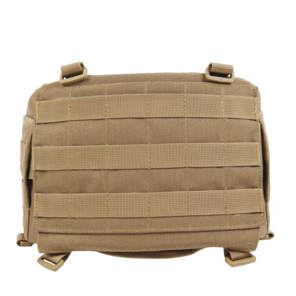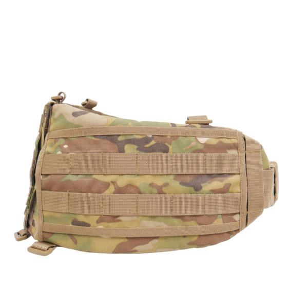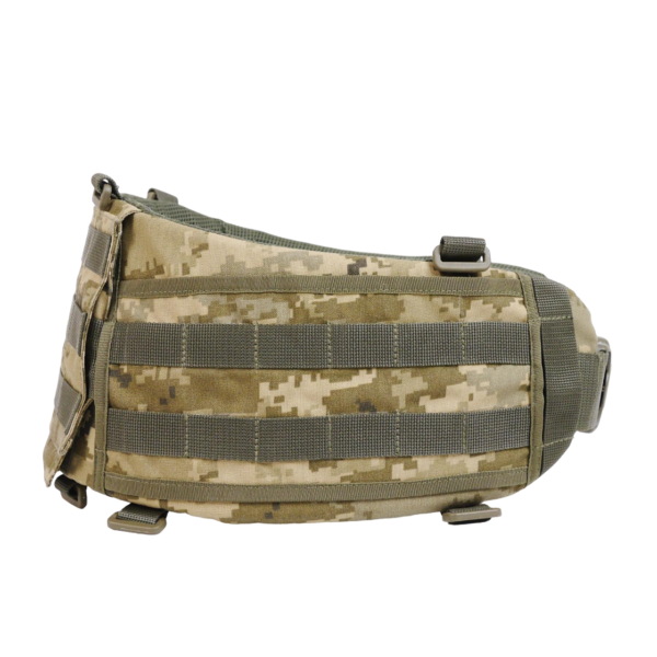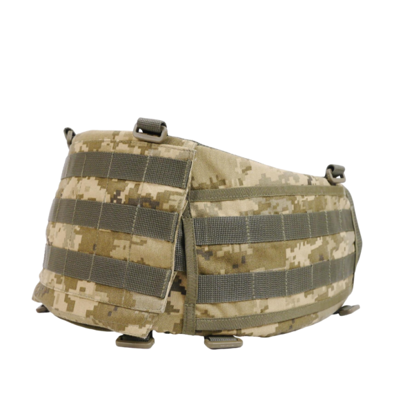 • Розташування MOLLE-строп: по 2 ряди збоку та 3 ззаду, що дозволяє зафіксувати будь-яке MOLLE-сумісне спорядження (підсумки, аптечки, сумки для скиду тощо)