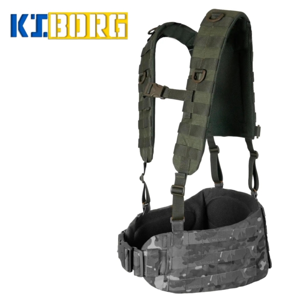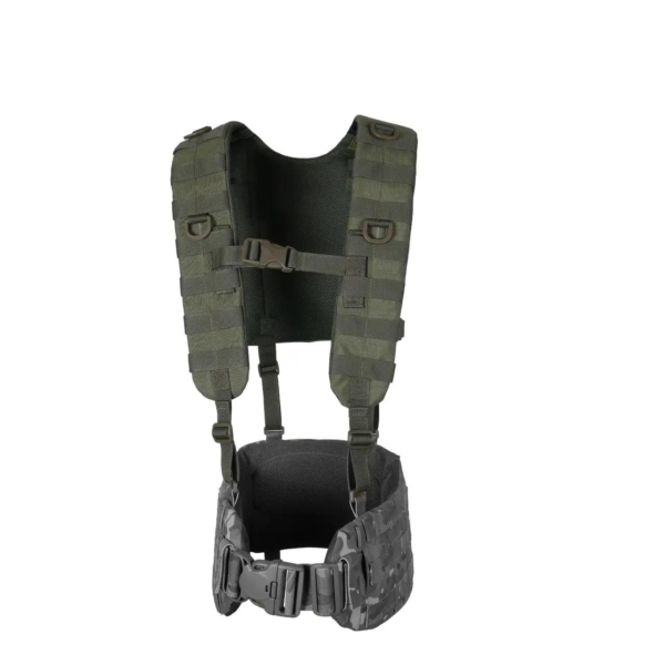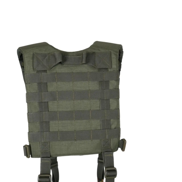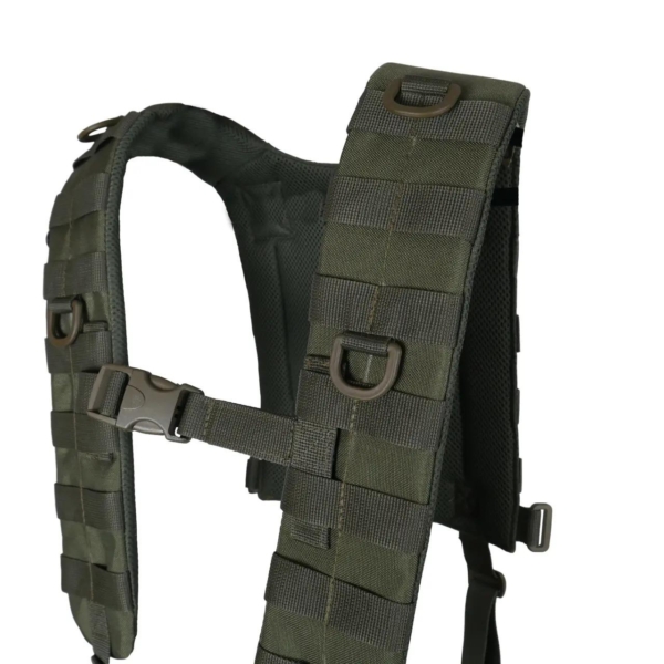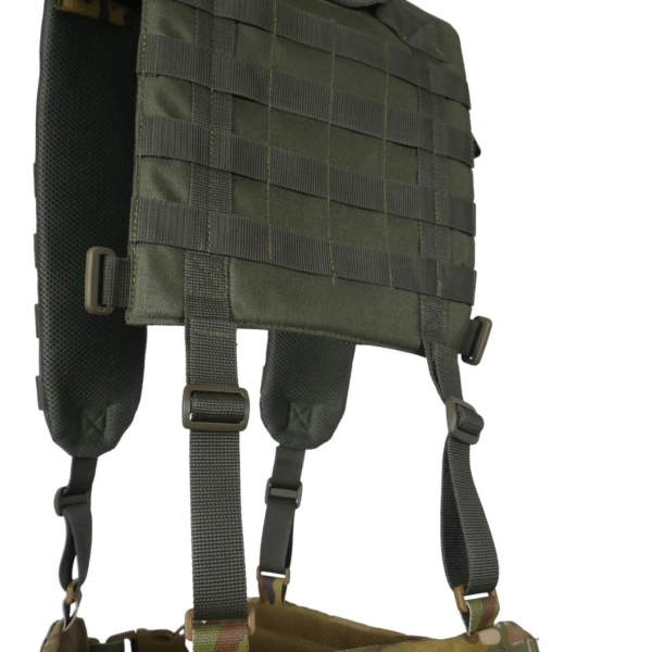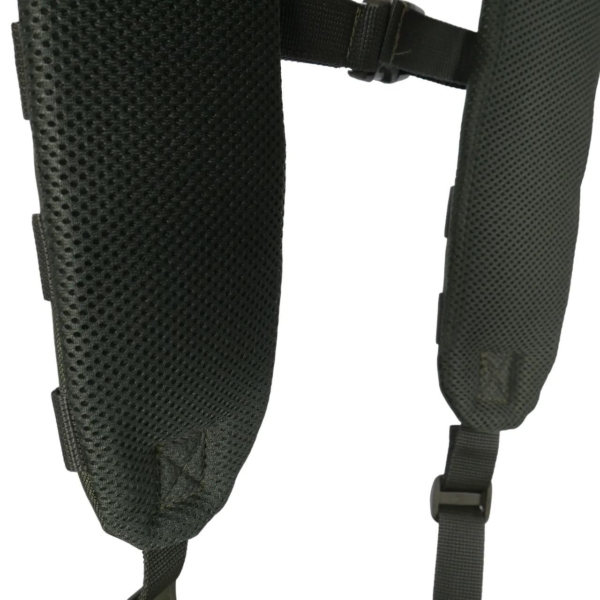 Конструкція. Плечові лямки мають рюкзачну конструкцію з комірками MOLLE на спині для закріплення додаткових підсумків. Має внутрішній шар Поліфому товщиною 5 мм та м'яку сітку для вентиляції. На лямках передбачено по 7 рядів MOLLE і нагрудний з’єднувальний ремінь на фастексі.