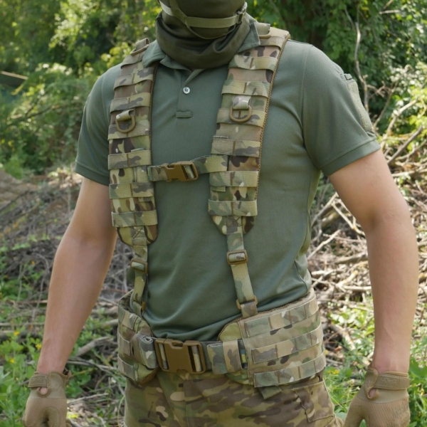 Конструкція. Плечові лямки мають рюкзачну конструкцію з комірками MOLLE на спині для закріплення додаткових підсумків. Має внутрішній шар Поліфому товщиною 5 мм та м'яку сітку для вентиляції. На лямках передбачено по 7 рядів MOLLE і нагрудний з’єднувальний ремінь на фастексі.