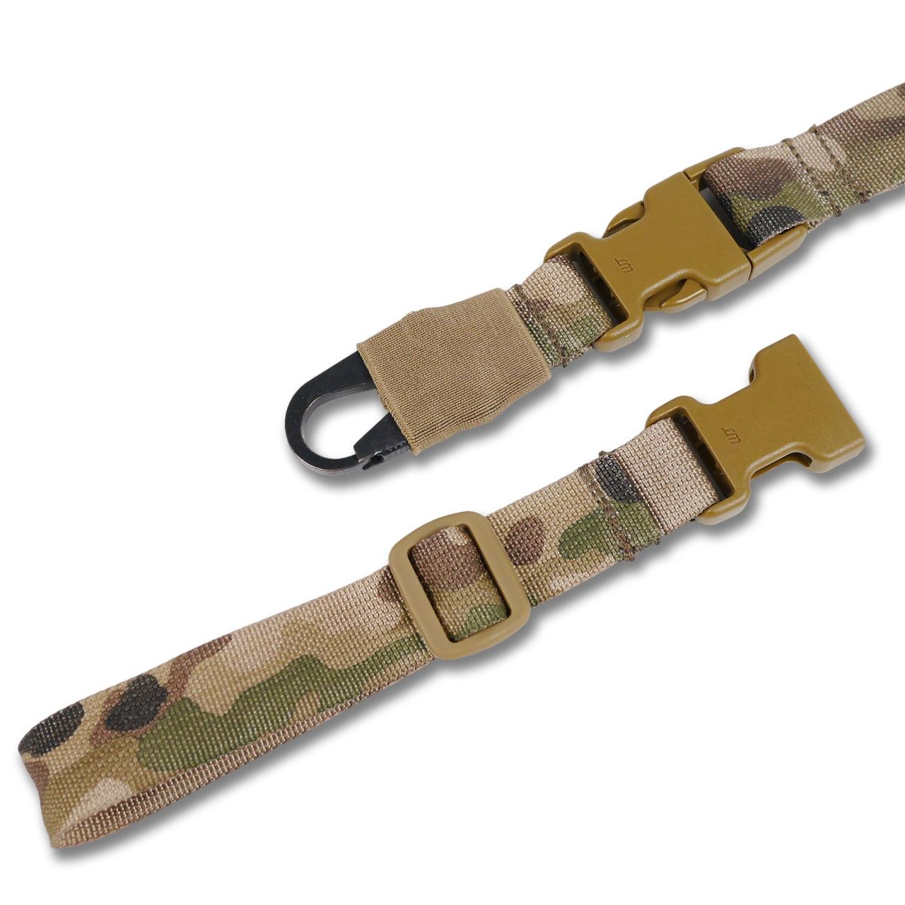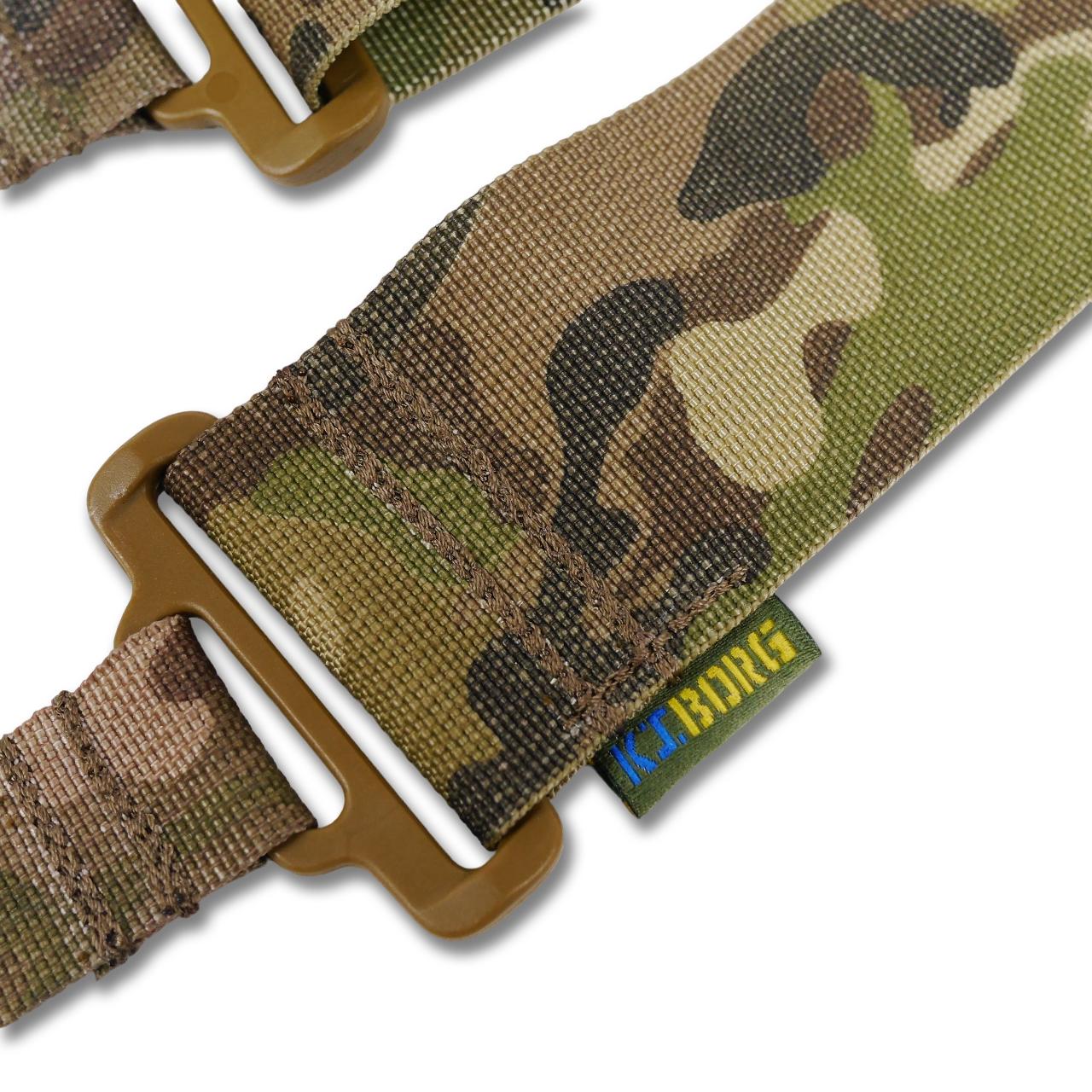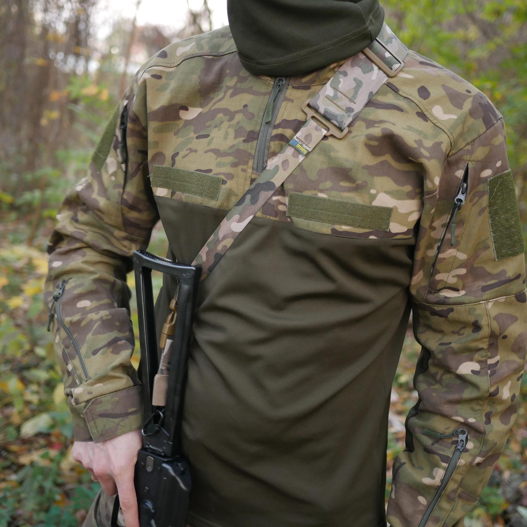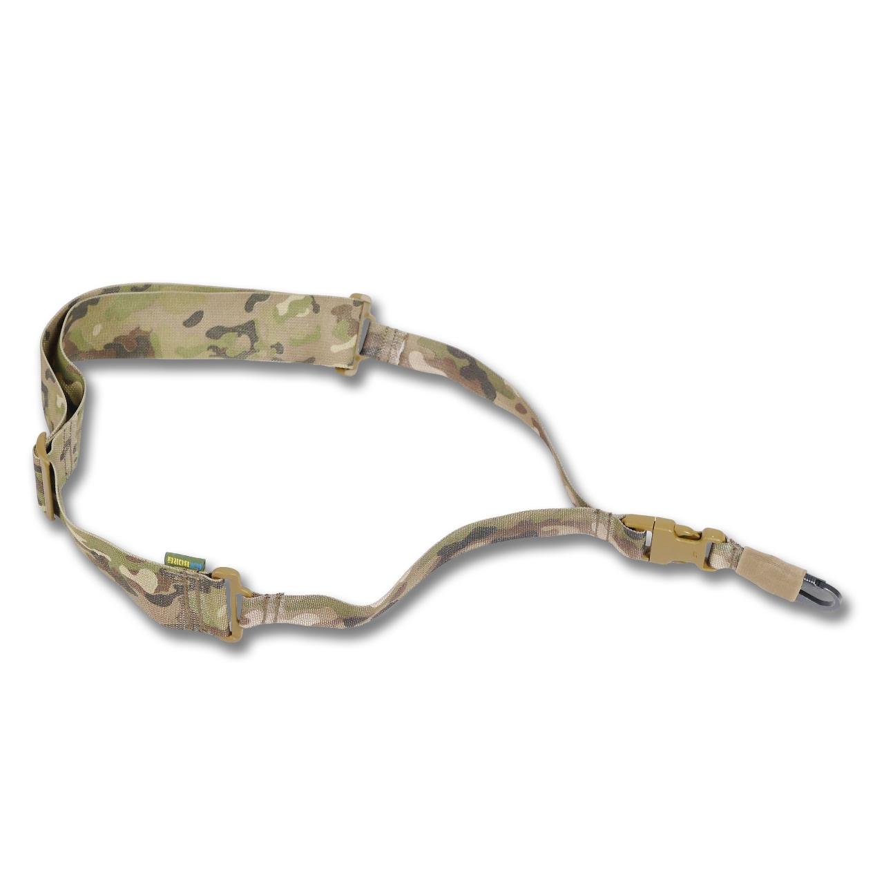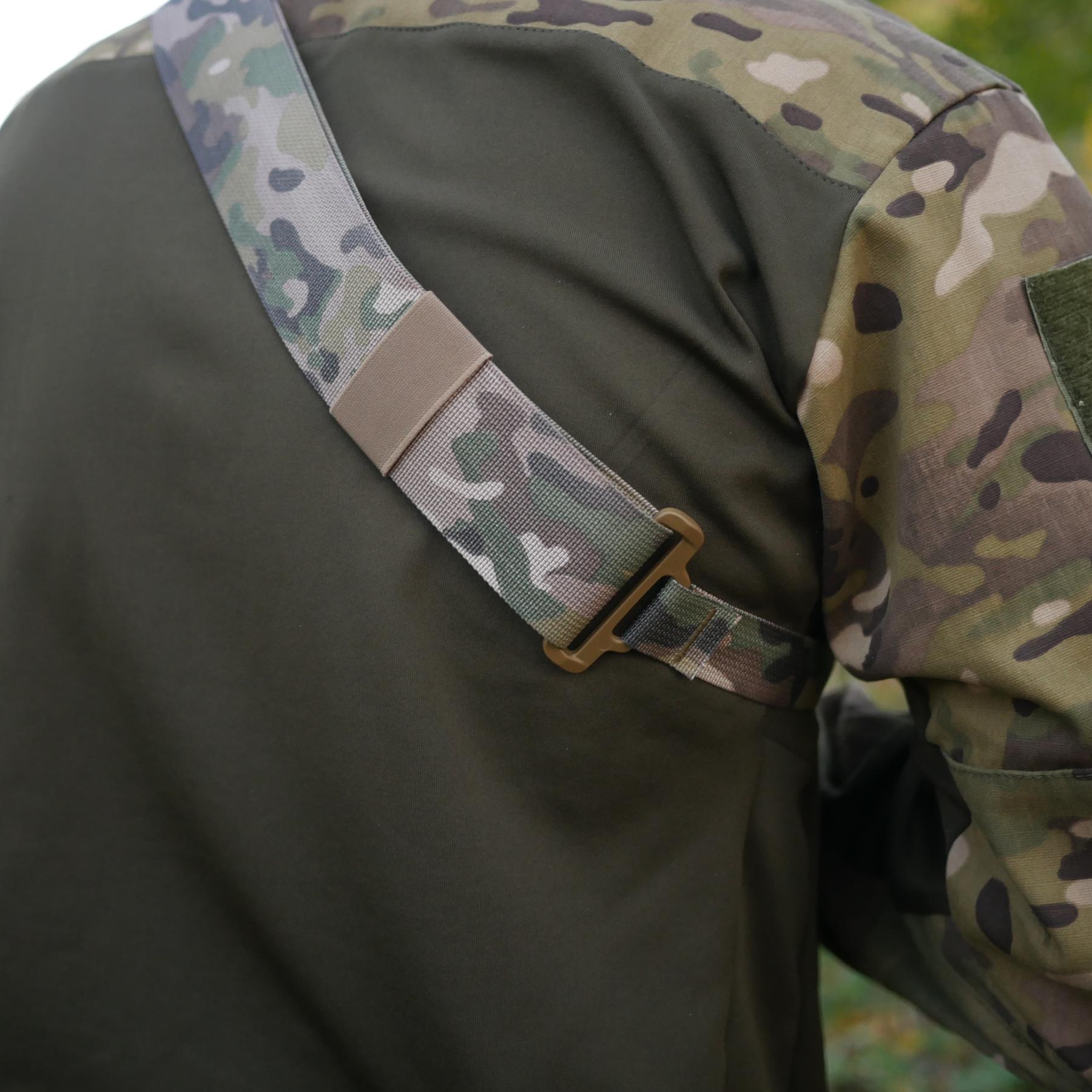 Камуфльована з лицьової та зворотної сторони стропа не змінює колір і не вигорає на сонці. Ремінь має систему швидкого скидання і регулюється по довжині.
