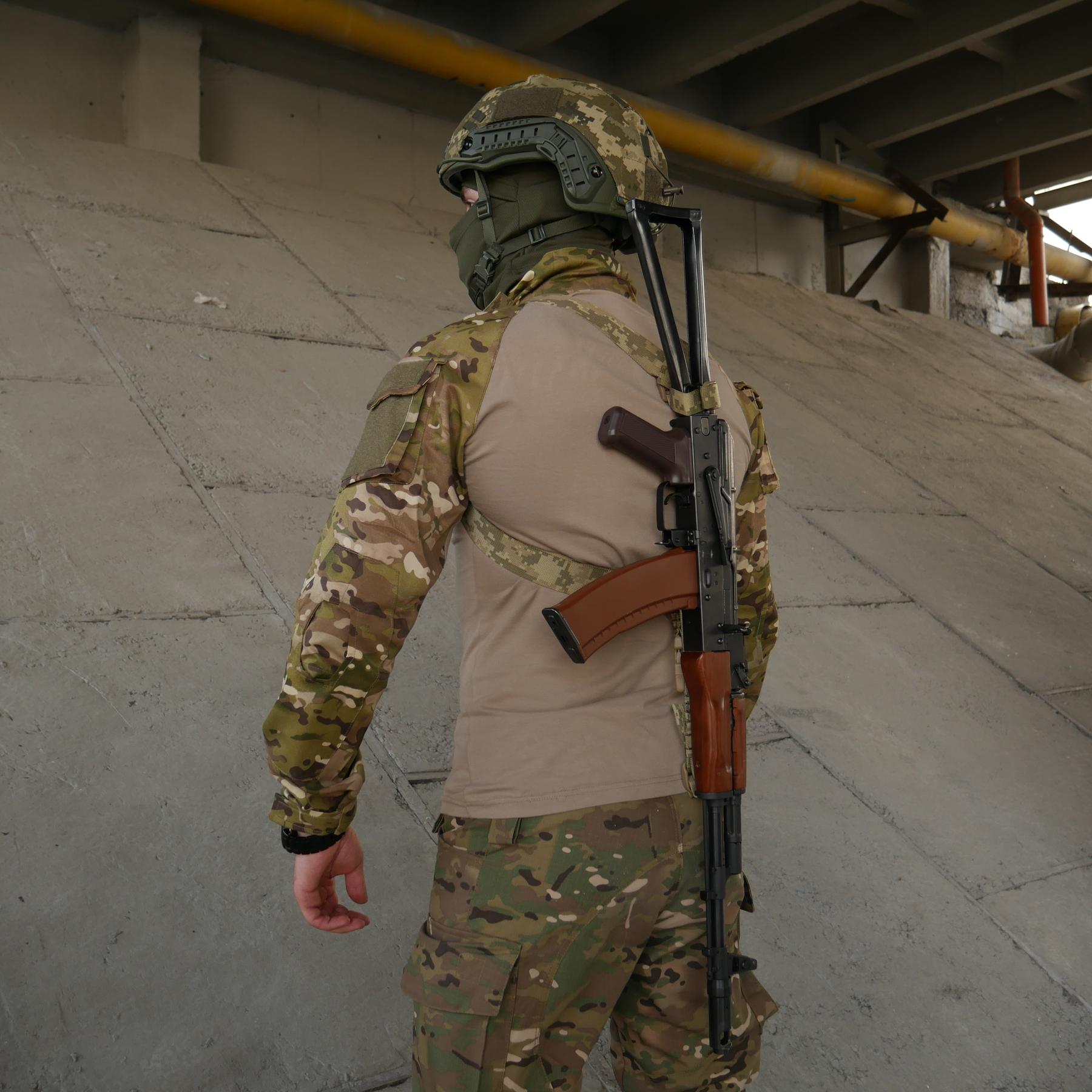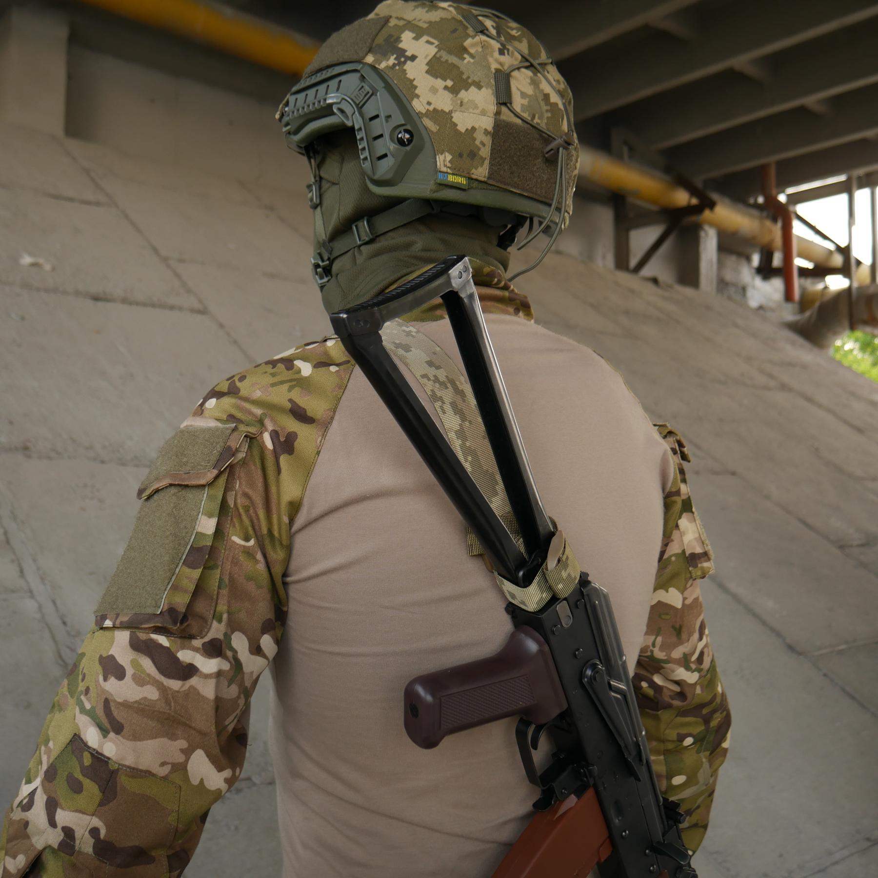 📍 У міських умовах дозволять швидко перекладати приклад зброї з одного плеча на інше. Достатньо розкрити передній фастекс 25 мм і перекласти приклад на інше плече.