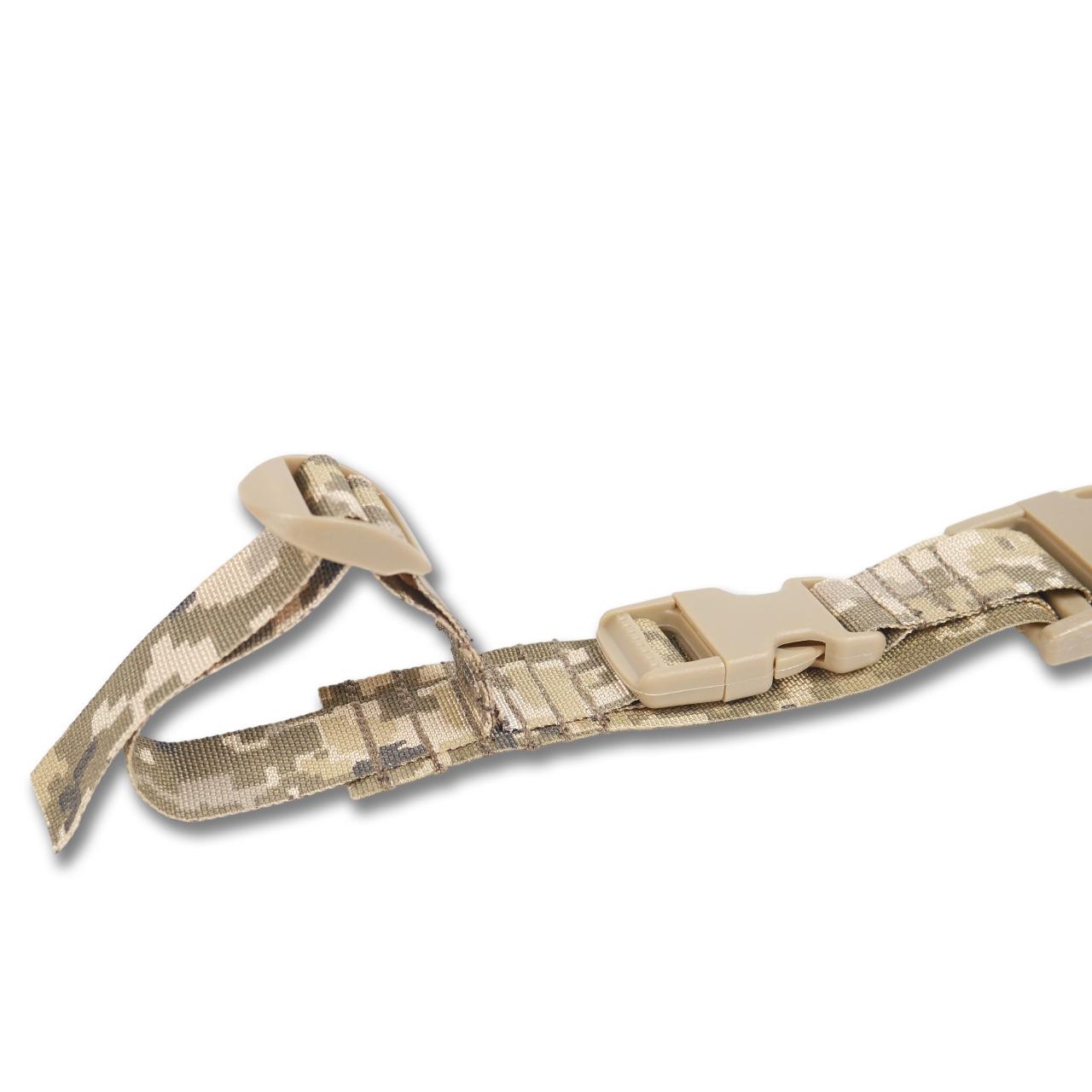📍Кріплення ременя до зброї здійснюється за допомогою перетяжок, що на відмінну від металічних карабінів виключають демаскуючий брязкіт і дзвін.