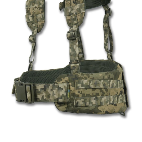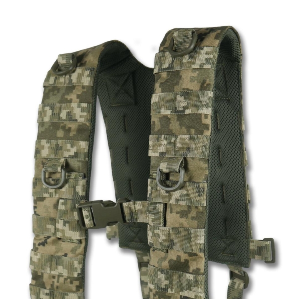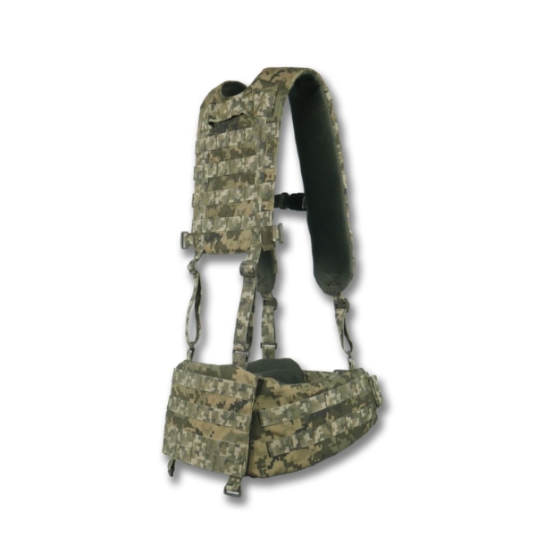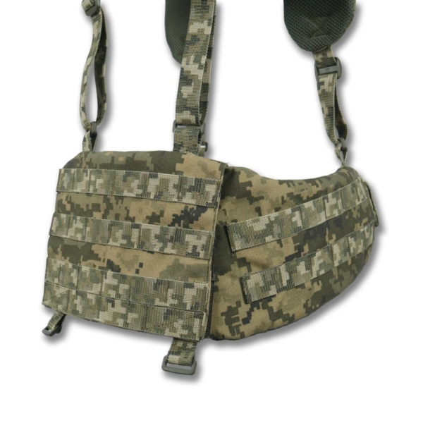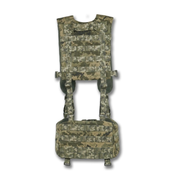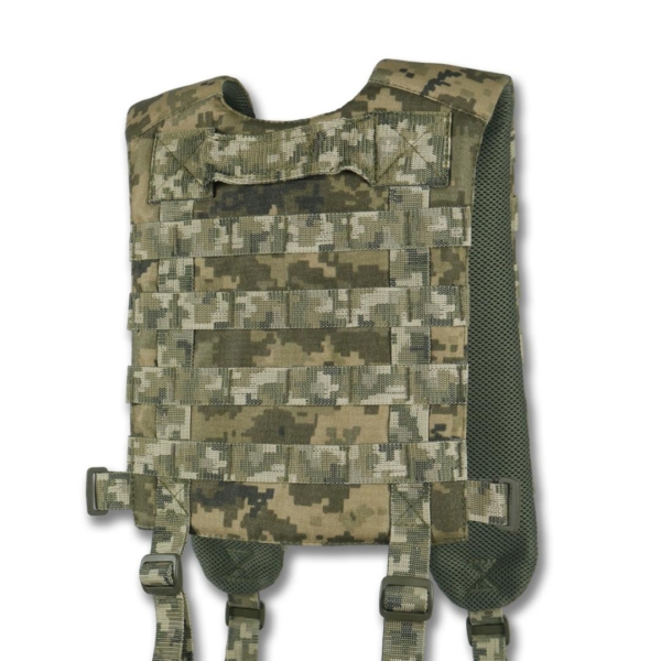 - конструкція рюкзачного типу з MOLLE-комірками (7 рядів спереду, 4 ряди на спині);