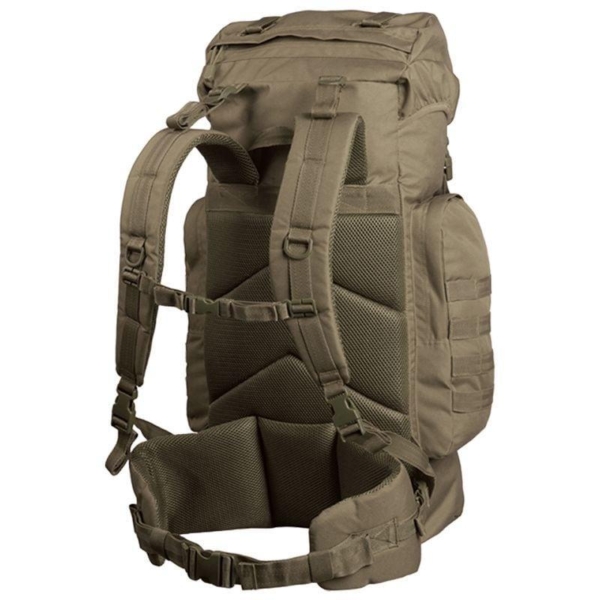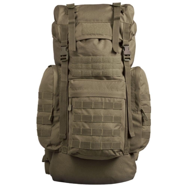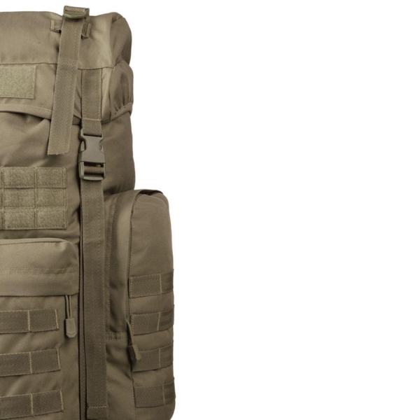 Великий експедиційний рюкзак об'ємом 65 літрів виготовлений повністю з міцного поліестеру 600D з ПВХ-покриттям. Горизонтальна тасьма PALS на передній та бічних стінках рюкзака дозволяє кріпити спорядження в системі MOLLE.