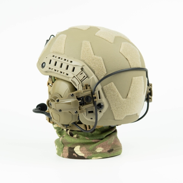 - Навушники легко кріпляться на шолом FAST за допомогою спеціальних адаптерів, що надає можливість швидкого перемикання між режимами використання.