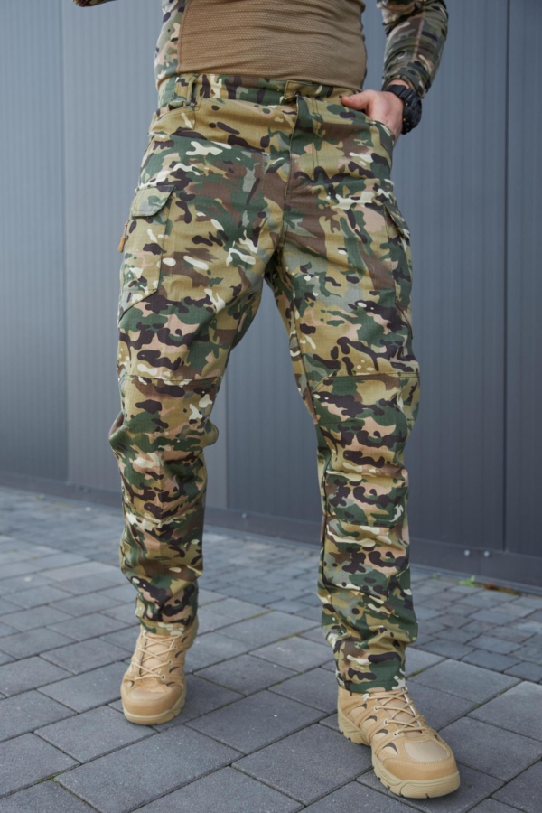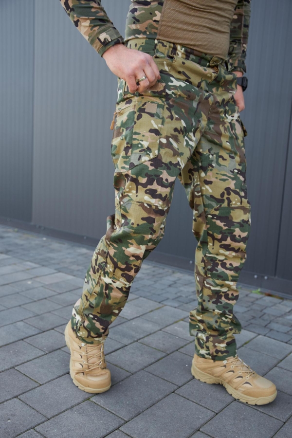 Тактичні штани у камуфляжі Multicam підійдуть для працівників силових структур, риболовлі, полювання, туризму та повсякденного використання. Виготовлені з міцної тканини Rip-Stop, стійкої до розривів, що гарантує довговічність і зносостійкість.