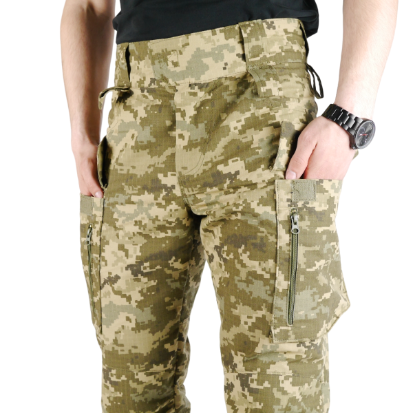Штани у камуфляжі піксель поєднують практичність та надійність, роблячи їх зручним варіантом для повсякденного використання та активного відпочинку.