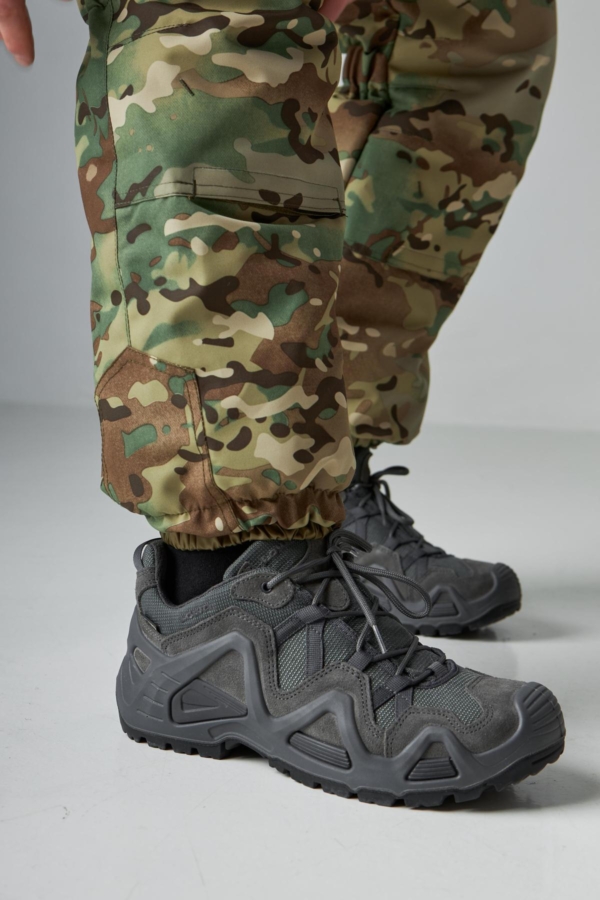 •Регулюється обʼєм штанини знизу за рахунок резинки+ присутній клапан який одягається по-верх взуття та не дає змоги потрапляти снігу;