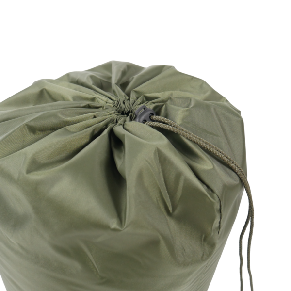 Компресійний чохол для спальника виконаний з тієї ж тканини, що і сам спальник, також для зручності має має транспортувальну підвіску.