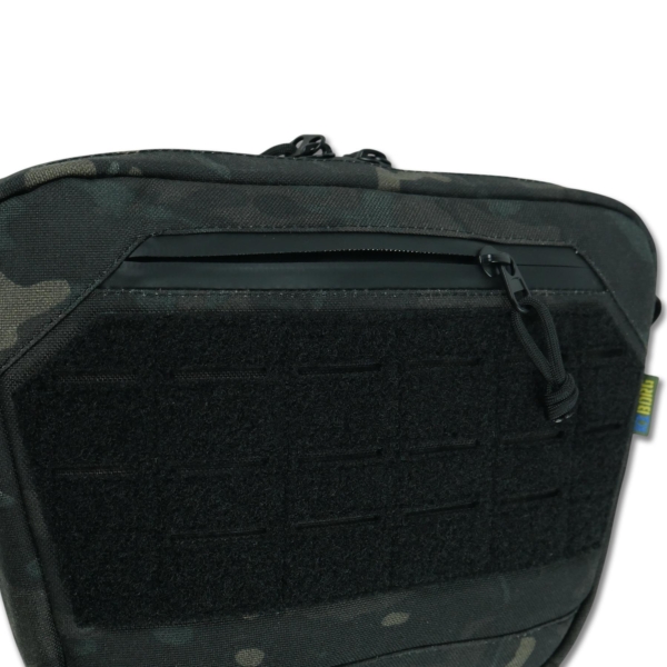 Має вологозахищену змійку з двома бігунками і пулером WJ, кріплення на липучку до плитоноски, фронтальну LaserCut панель з MOLLE. Усередині — чотири відділення (три внутрішні й одне фронтальне), задня кишеня під балістичний пакет 1 класу, знизу — еластичне кріплення 10 см для турнікета.
