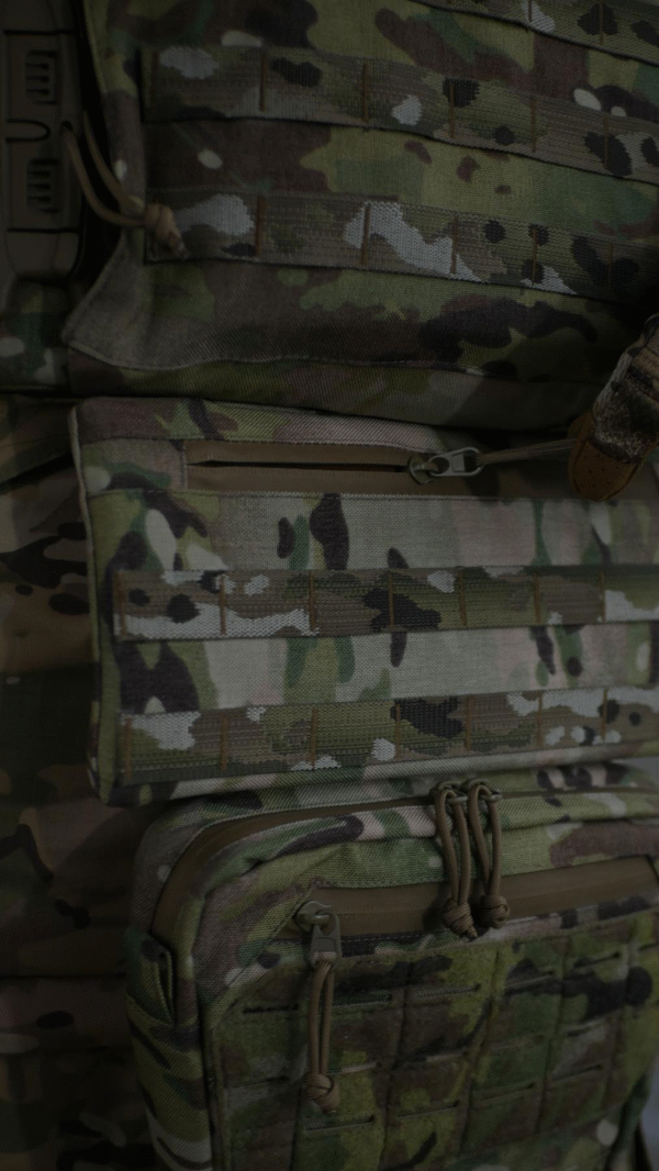 - фронтальна LaserCut-панель із системою MOLLE для патчів чи додаткового спорядження;