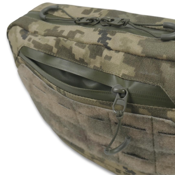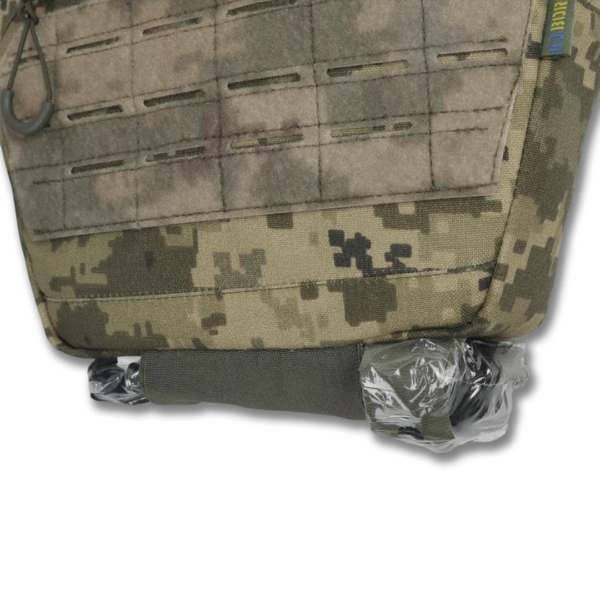 - Фронтальна велкро-панель LaserCut з системою MOLLE для кріплення патчів та додаткового спорядження.
