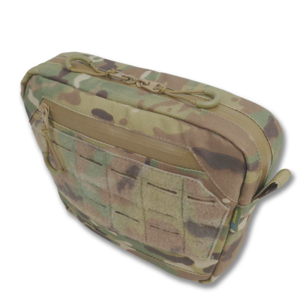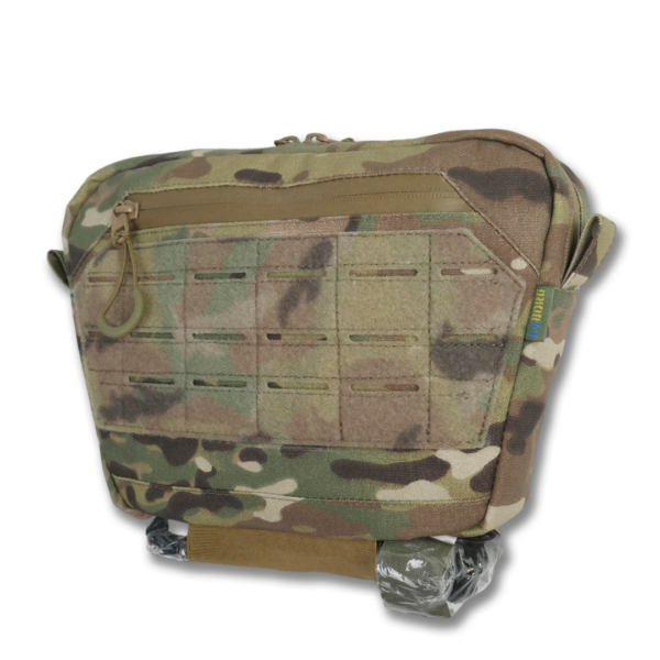 Має вологозахищену змійку з двома бігунками та пулером WJ, кріплення на липучку до плитоноски, фронтальну LaserCut панель з MOLLE. Усередині — чотири відділення (три внутрішні й одне фронтальне), задня кишеня під балістичний пакет 1 класу та еластичне кріплення 10 см для турнікета.