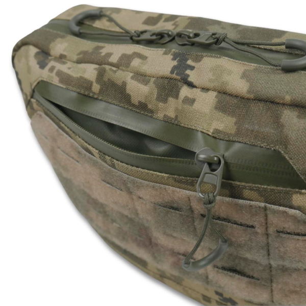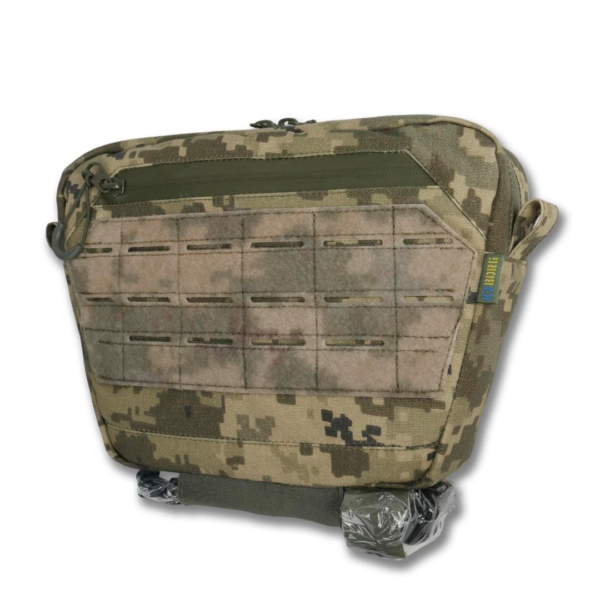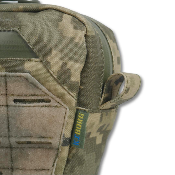 Сумка-напашник Kiborg XL — містка та функціональна, виготовлена з Cordura 1000D (380 г/м²) з NIR-просоченням і подвійним поліуретановим покриттям, що забезпечує стійкість до вологи, мастил, стирання та вигорання.