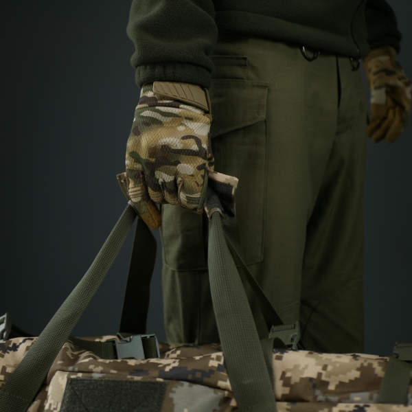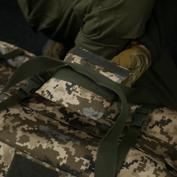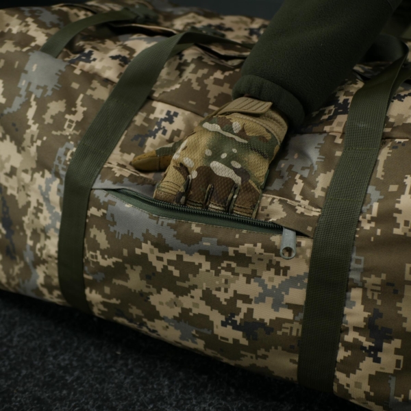 Містка сумка розміром 82×37×33 см виготовлена з оксфорду 900D PU з внутрішнім поліуретановим просоченням. Матеріал стійкий до вологи, морозів та зношування, зберігає гнучкість і не тріскається навіть при інтенсивному використанні.