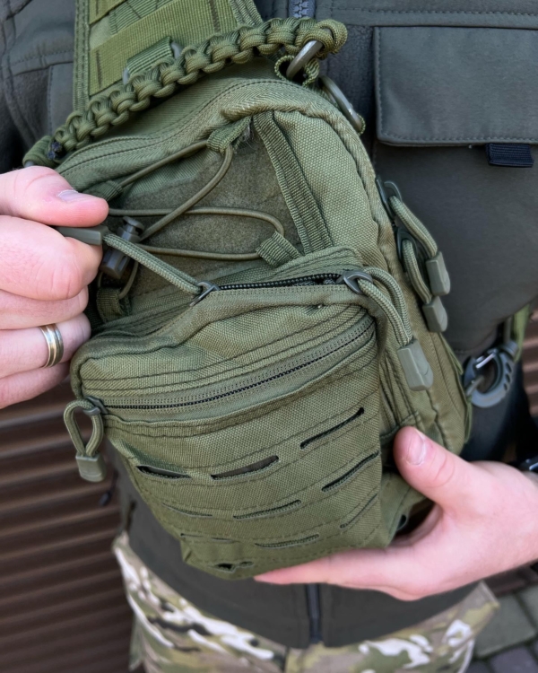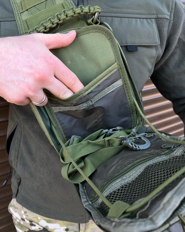 Тактична сумка через плече на дві сторони з відділом під пістолет.