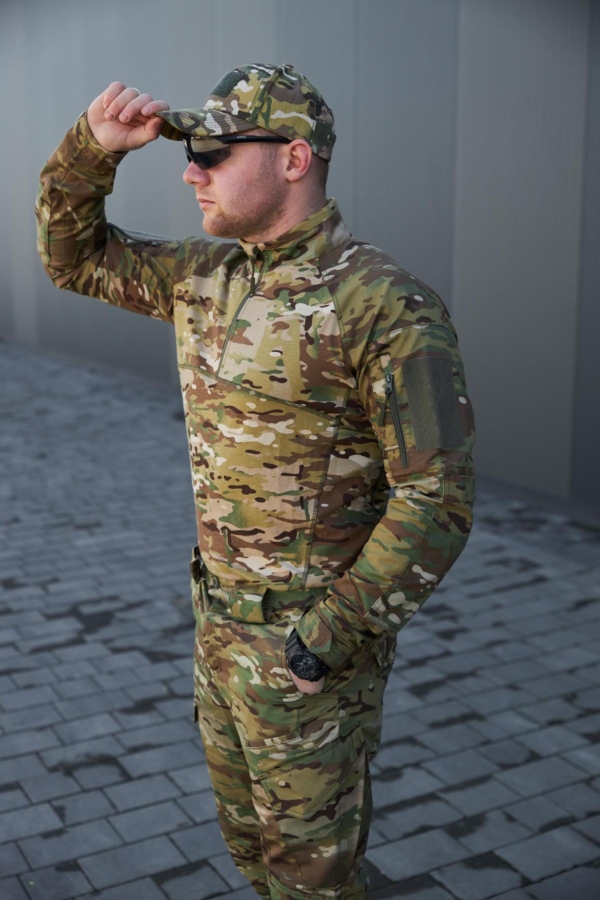 • Тканина: центральна частина — 95% бавовна, 5% еластан; рукава — англійський твіл