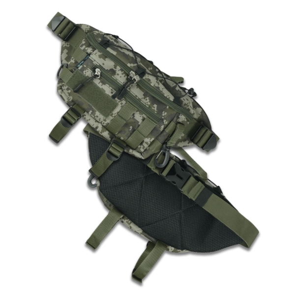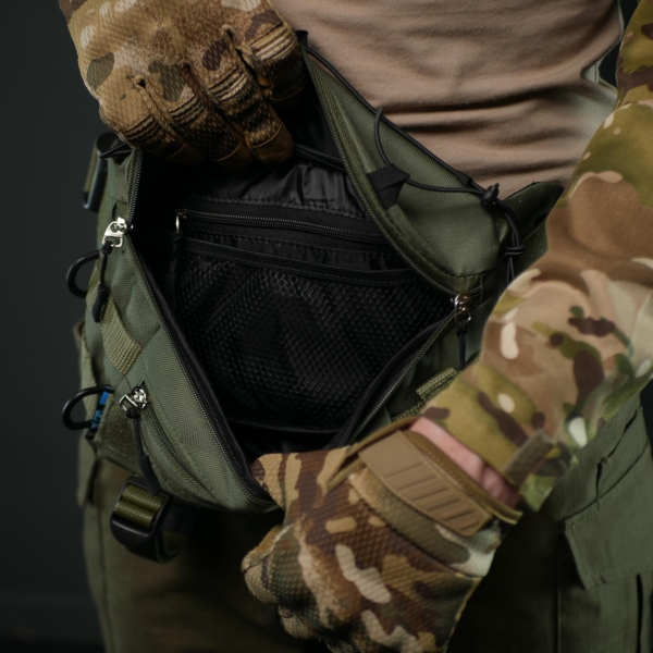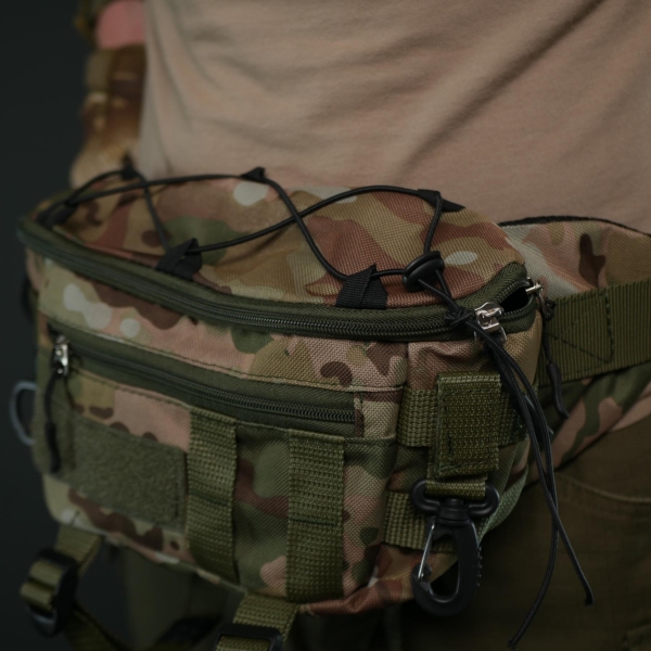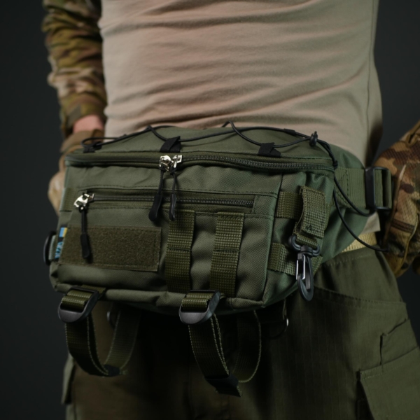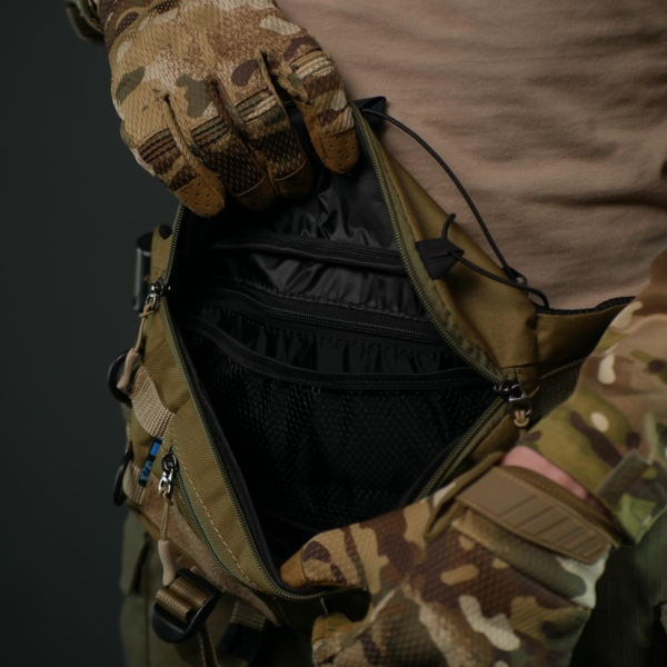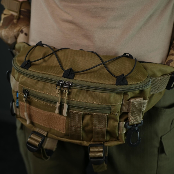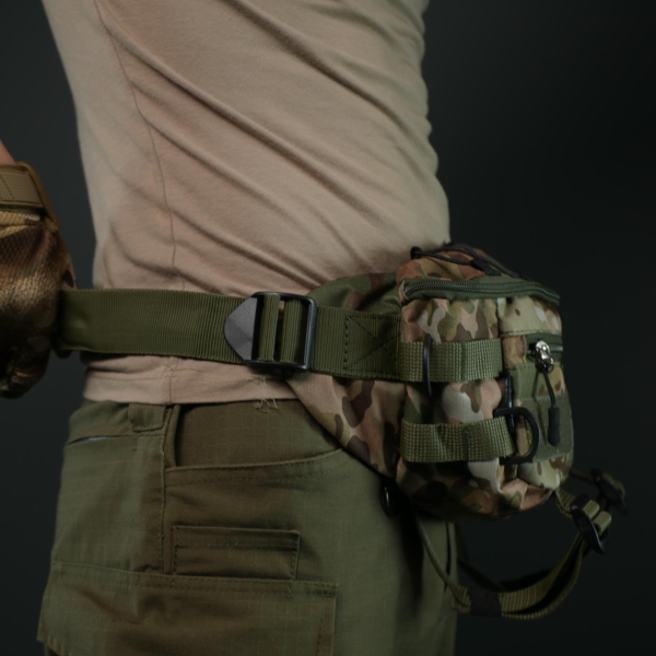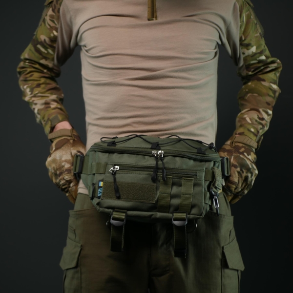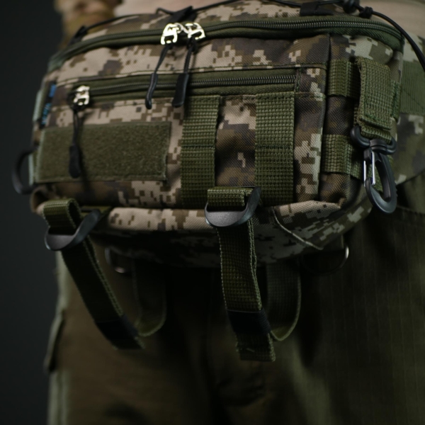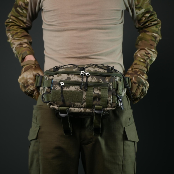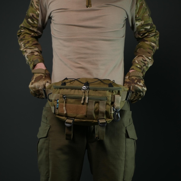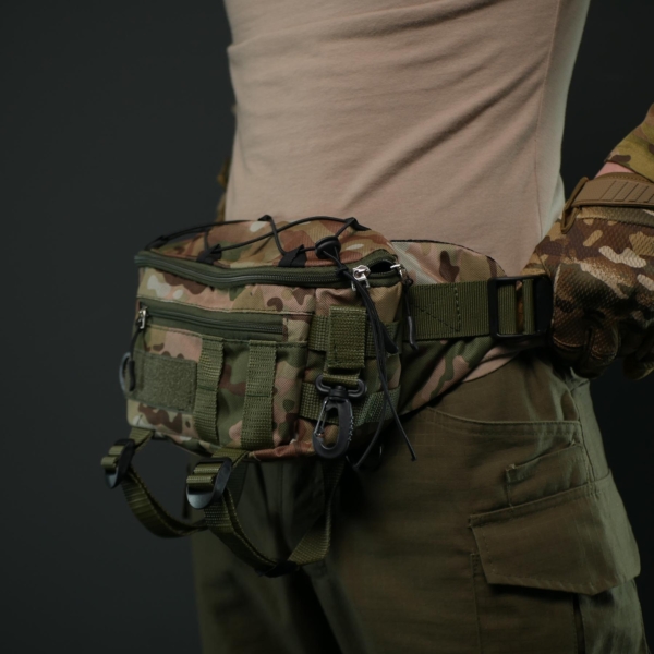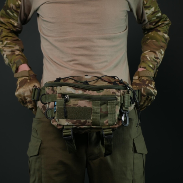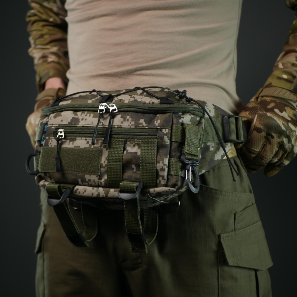 Тактична сумка-бананка середнього розміру — це зручне та практичне рішення для щоденного використання, тренувань або тактичних завдань. Виготовлена з водовідштовхувального нейлону підвищеної міцності з посиленою ниткою, що забезпечує довговічність і стійкість до зносу.